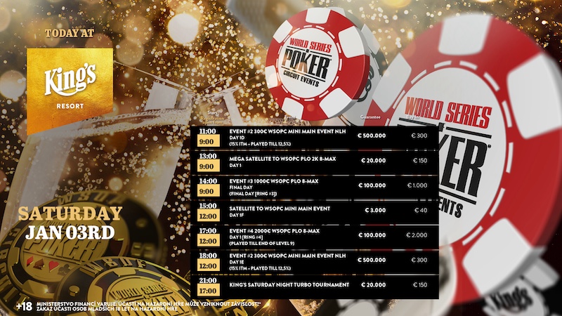 Im King’s Resort Rozvadov ging es gestern weiter mit dem World Series Of Poker Circuit! Dabei wurde ein Sieger in Event #1 gefunden, das Event #3 wurde gestartet und das Event #2 spielte zwei weitere Starttage aus.