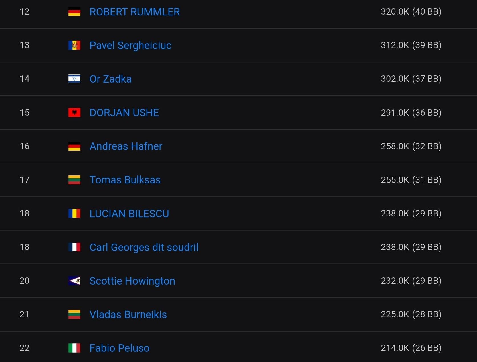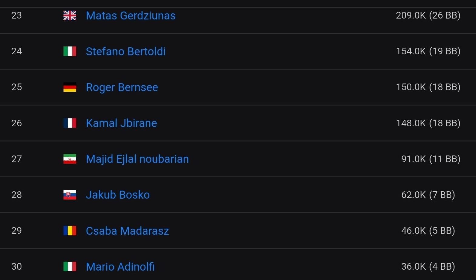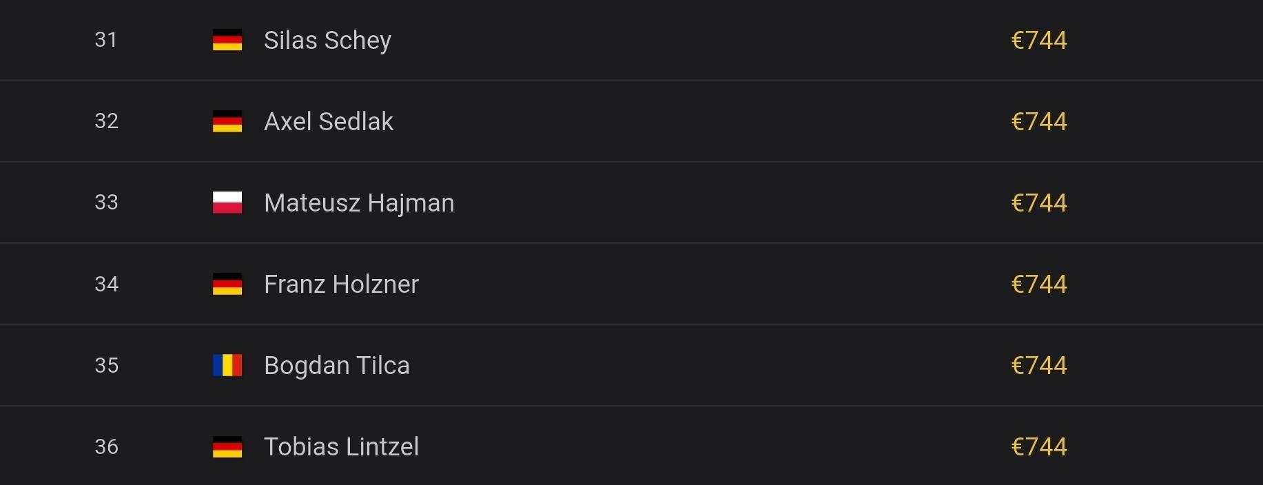 36 Spieler erreichten gestern das Preisgeld, 30 von ihnen sind heute im Finale dabei.