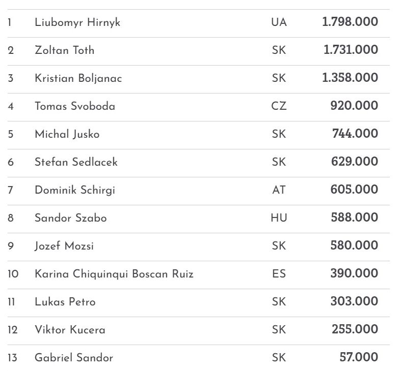 Erster Chipleader ist der Ukrainer Liubomyr Hirnyk, der 1,798 Mio. Chips sammelte und damit den Slowaken Zoltan Toth knapp auf Platz 2 verwies.