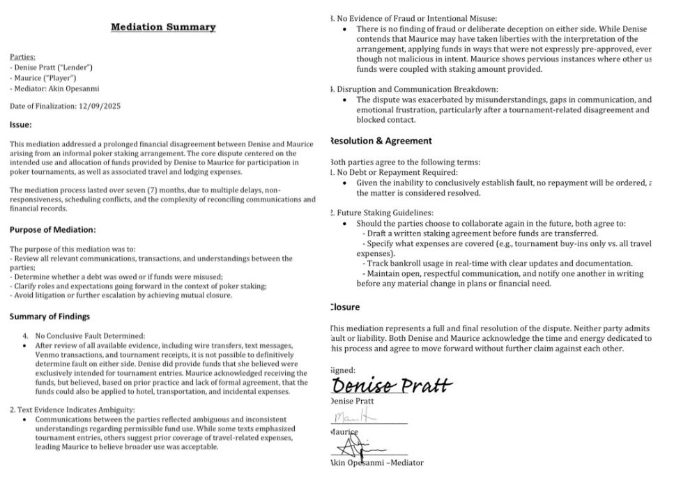 Nachdem er Ende November verprügelt wurde, kam es nun immerhin zu einer Einigung mit einer seiner Gläubigerinnen, Denise Pratt.