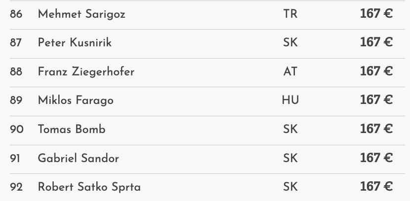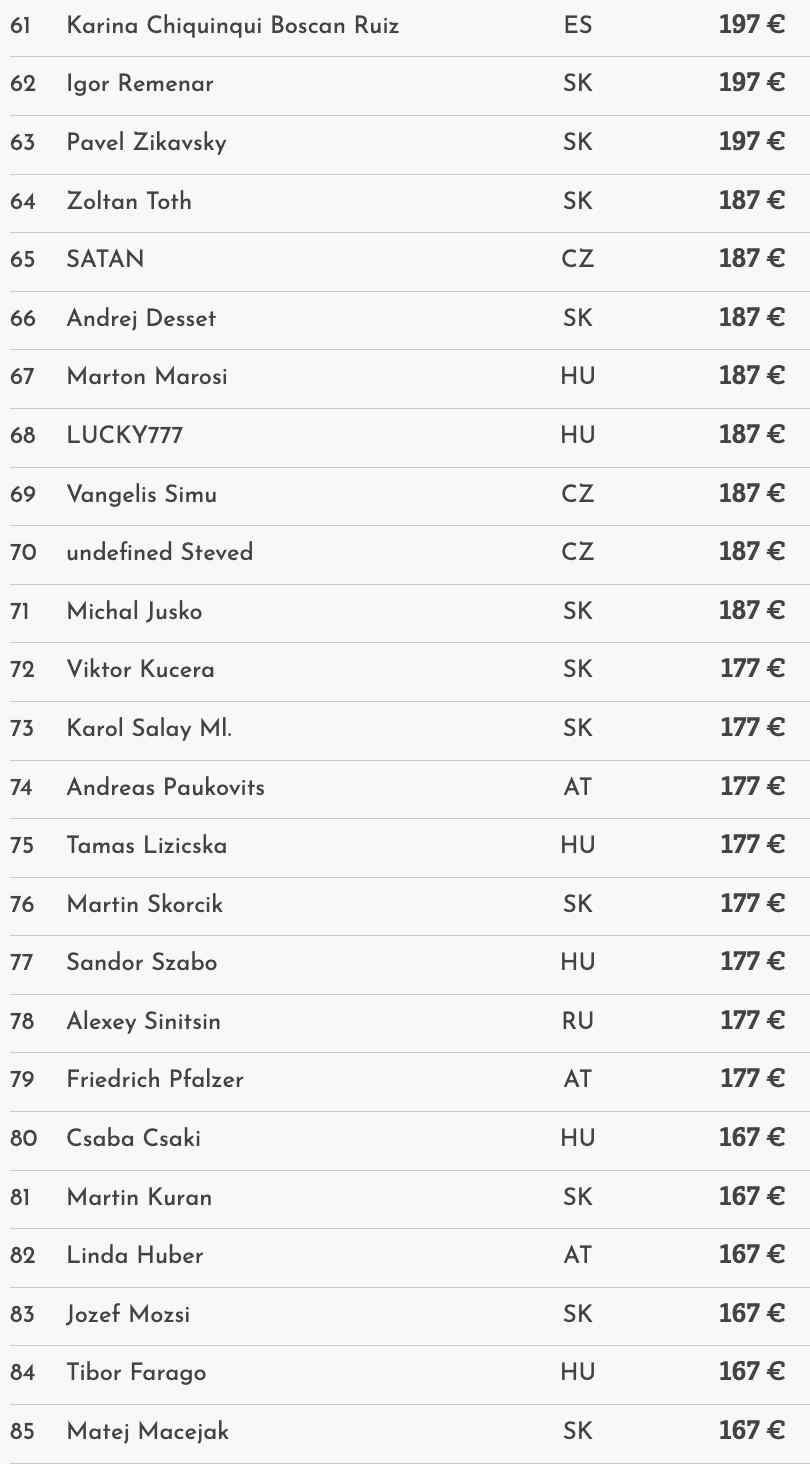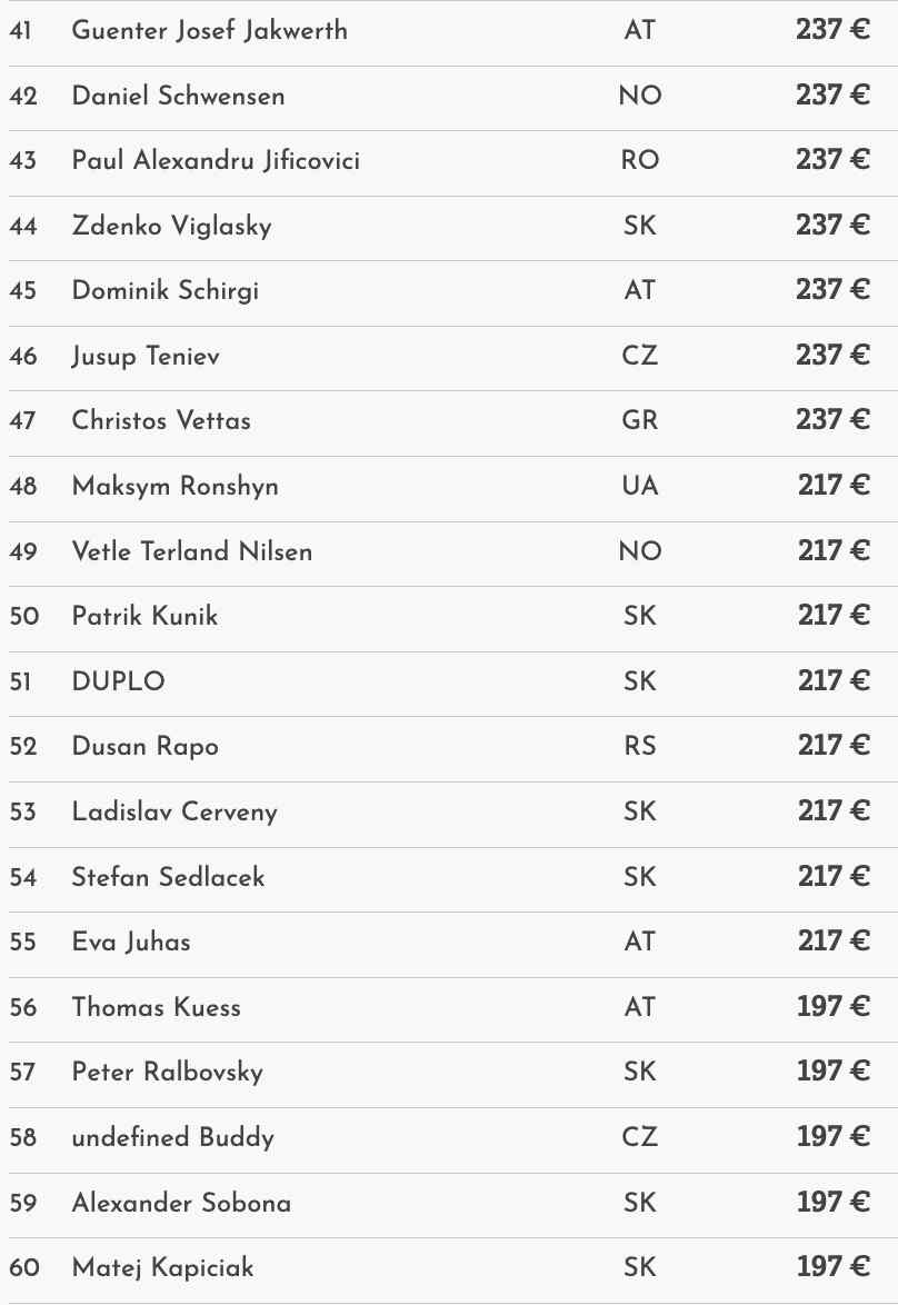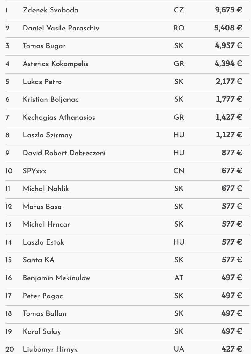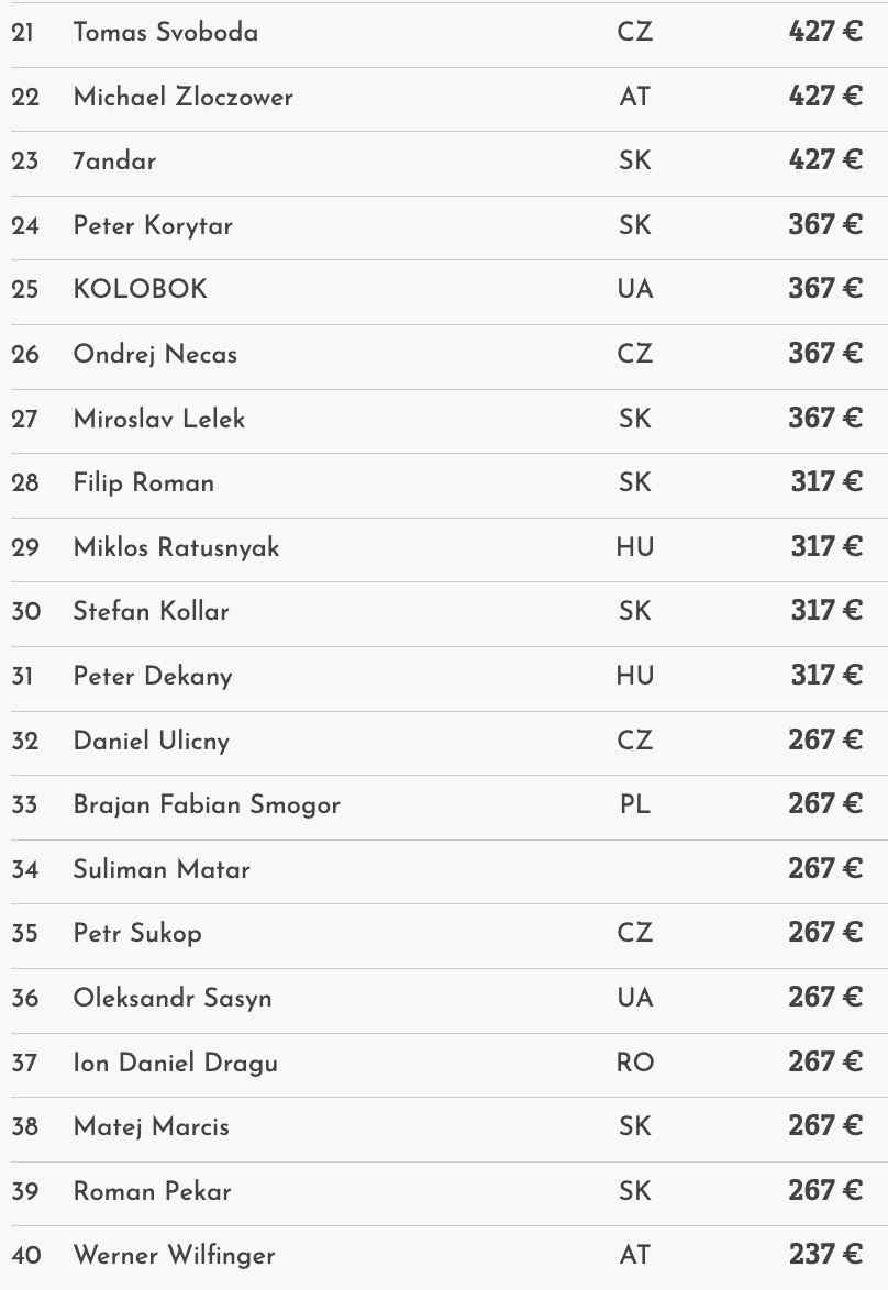 Die deutschsprachige Community spielte auf den vorderen Rängen keine große Rolle. Der beste wurde Benjamin Mekinulow auf Platz 16 für €497.
