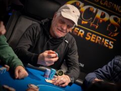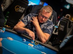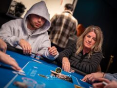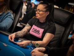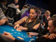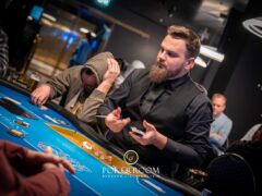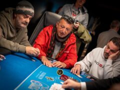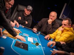 Am Final Table angelangt, musste als Erster „Pancho“ (GER, 9., 310 CHF) aufstehen, gefolgt von den Eidgenossen „Mac“ (SUI, 8., 405 CHF) und „Doodel“ (SUI, 7., 520 CHF). Lokalmatadorin und Dauercasherin Kathrin Wolfinger (LIE, 5., 840 CHF) landete am Freitag auf Rang 5. Nach dem Ausscheiden von „Scorpio“ (GER, 4., 1.045 CHF) einigte sich das verbleibende Trio auf einen Deal.