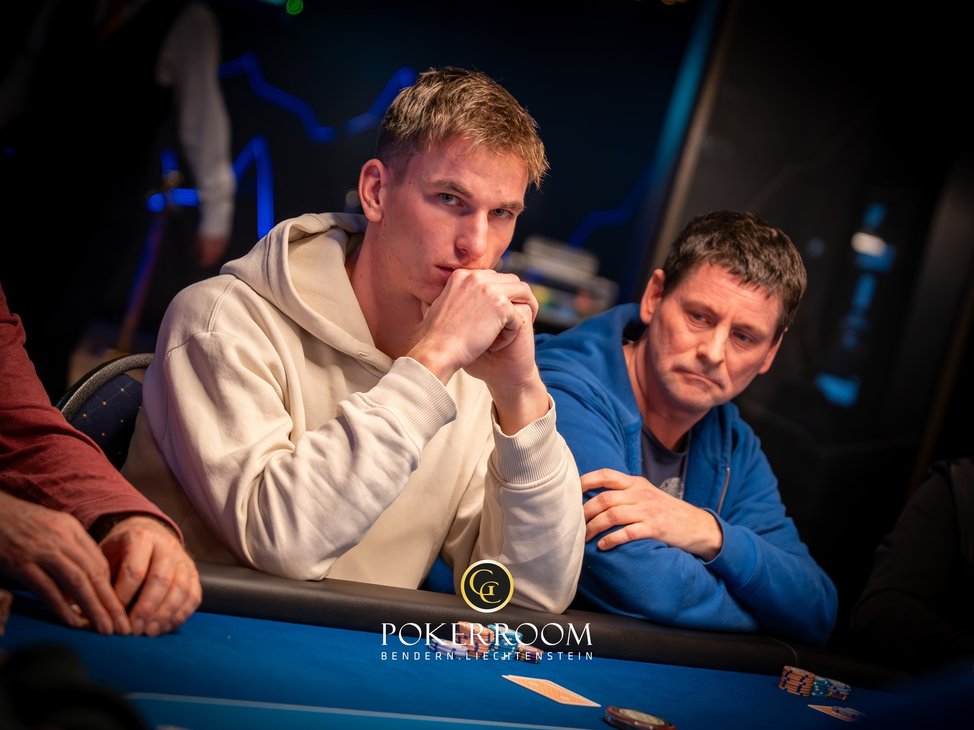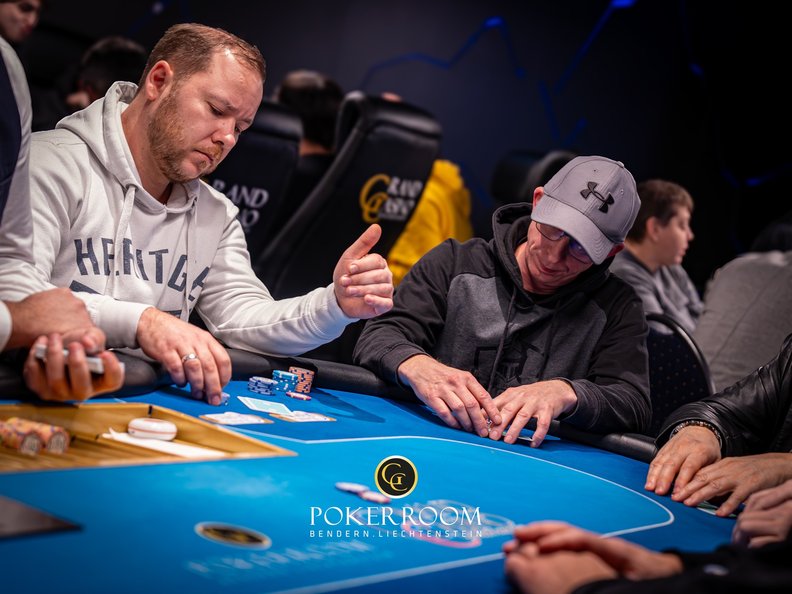 Am Final Table angelangt, musste als Erster „Pancho“ (GER, 9., 310 CHF) aufstehen, gefolgt von den Eidgenossen „Mac“ (SUI, 8., 405 CHF) und „Doodel“ (SUI, 7., 520 CHF). Lokalmatadorin und Dauercasherin Kathrin Wolfinger (LIE, 5., 840 CHF) landete am Freitag auf Rang 5. Nach dem Ausscheiden von „Scorpio“ (GER, 4., 1.045 CHF) einigte sich das verbleibende Trio auf einen Deal.