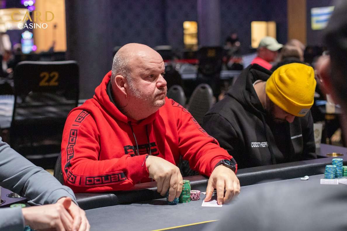 Mit etwas Overlay ob der knapp verfehlten €250k-Garantie gingen 114 Spieler*innen mit sicheren €415 Min-Cash in Tag 2. Eigentlich hatten sich 122 Stacks qualifiziert, davon 8 jedoch doppelt. Diese Leistung ist im Card Casino Samorin keine vergebene Müh, da eine zweifache Day-2-Quali mit €1.000 Prämie vergütet wird.