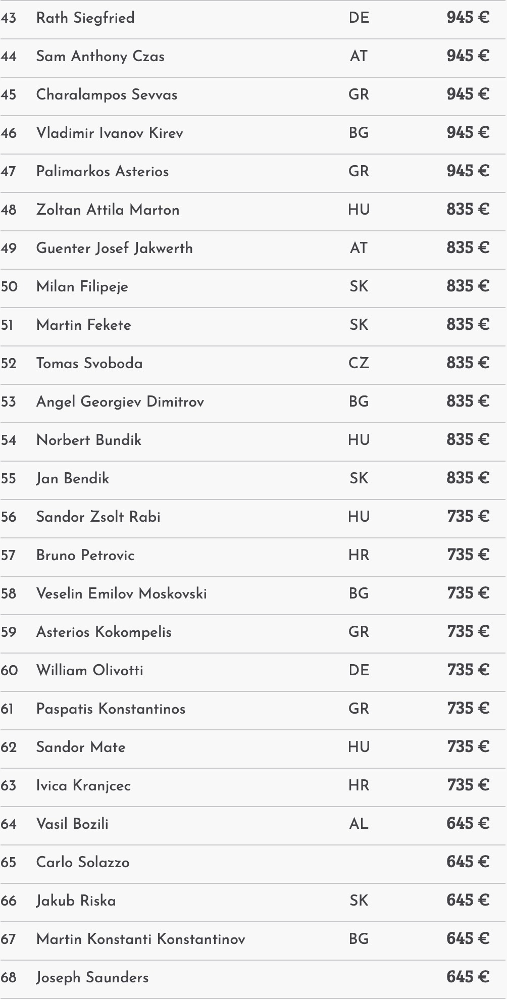 Day 1E | 179 | 18 | Hrvoje Dilberovic (HR): 2.330.000 |