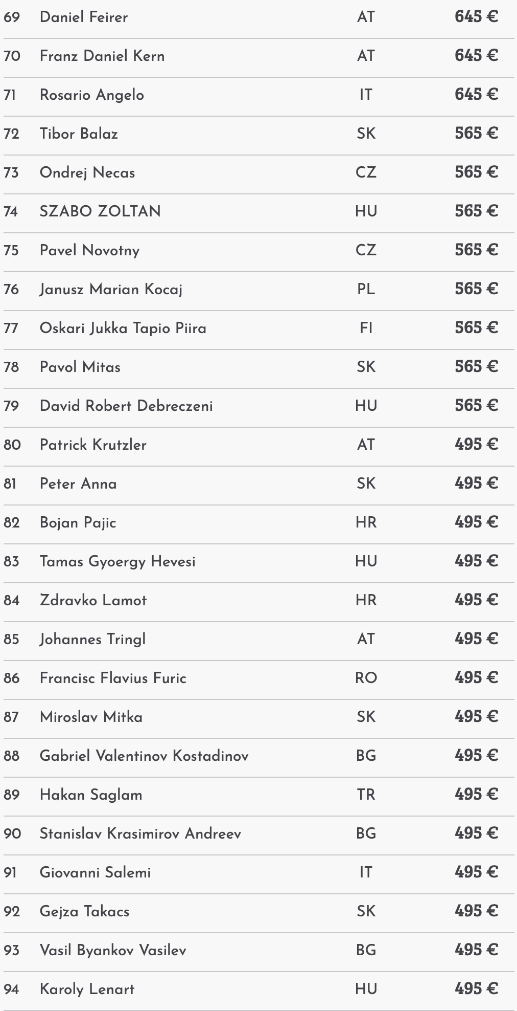 Day 1C | 146 | 15 | Jan Bendik (SK): 2.255.000 |