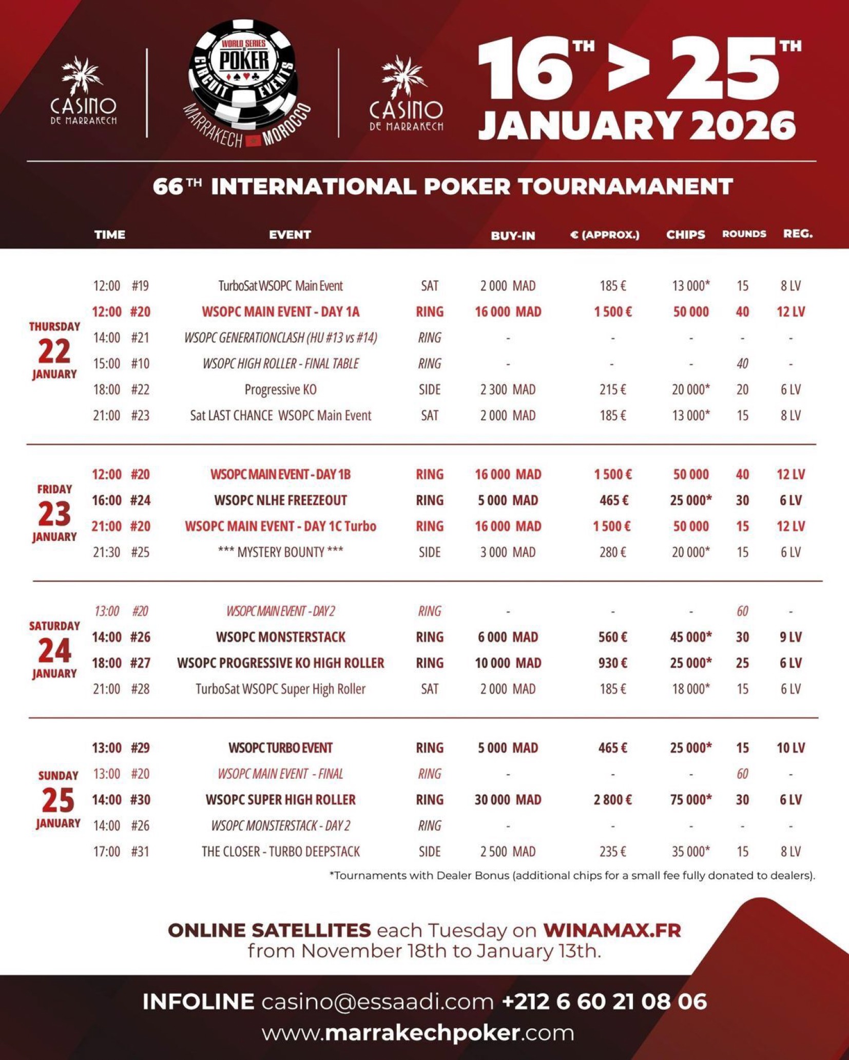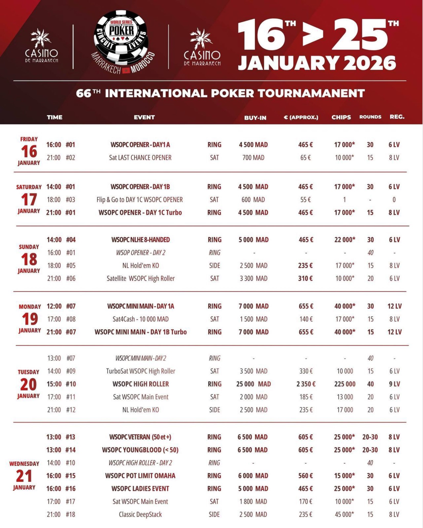 Alles Weitere zum WSOPC Marrakech findet ihr auf der entsprechenden WSOP.com Seite des Festivals!