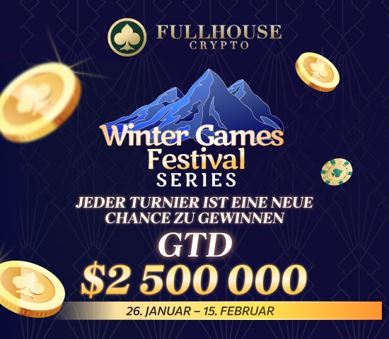 Die nächste Online Poker Series steht mit der Winter Games Festival Series bei Full House Crypto (FHC) vor der Tür. Der Online Poker Room verlängert im Anschluss an die Winter Wonderland Series und die Low in the Snow PKO Series damit seine Wintersaison. FHC lässt sich dabei nicht Lumpen und hat für die 3 Wochen durchgängige Turnieraction insgesamt $2.500.000 an Garantien in die Preispools gelegt!