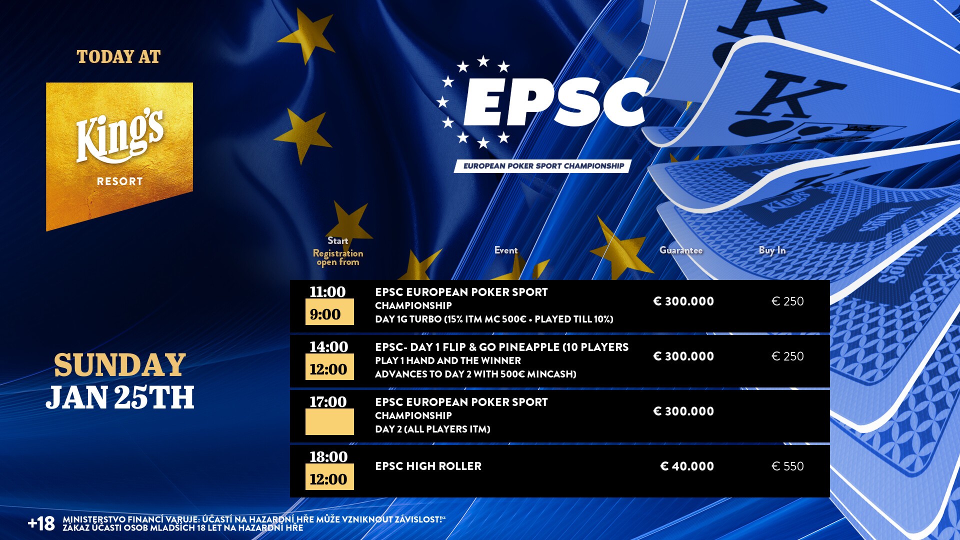 Das Main Event der European Poker Sport Championship (EPSC) powered by Poker-Bundesliga steuert im King’s Resort Rozvadov auf ein fettes Overlay zu.