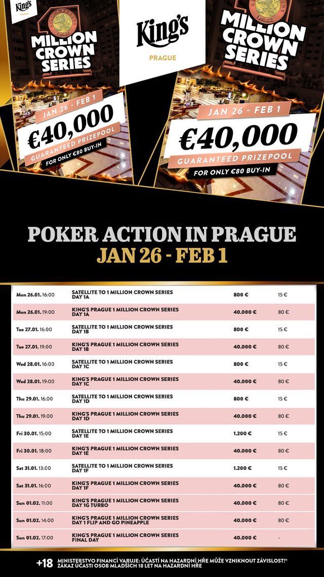 Neben dem Main Event wurde im Rahmen der European Poker Sport Championship powered by Poker-Bundesliga wurde das EPSC High Roller Event für die Spieler*innen mit entsprechendem Geldbeutel im King’s Resort Rozvadov ausgetragen und entschieden. Dabei wurde der garantierte €40.000 Preispool ohne Deal ausgespielt. – No Deal hieß es auch im King’s Casino Prague, wo nach dem abschließenden Startflight 1C das Finale der CPT Ceska Pokerova Tour ausgespielt wurde.