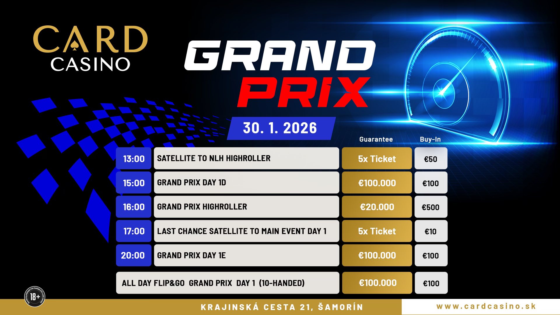 Der Turnierplan vom Card Casino Grand Prix: