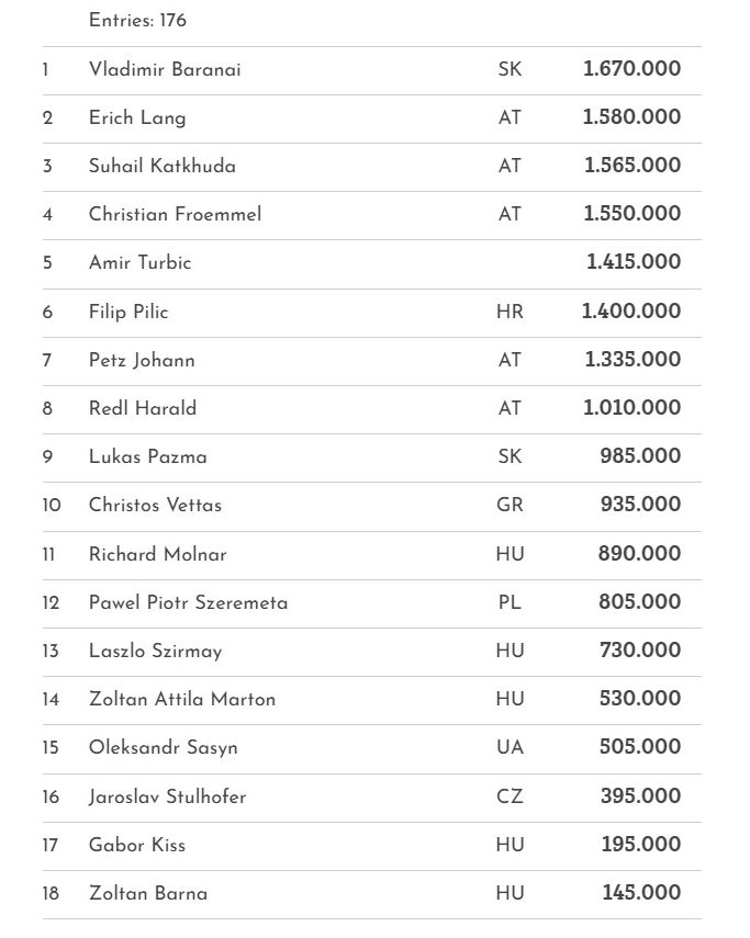1A | 131 | 14 | Attila Almasi (HU): 2.995.000 |