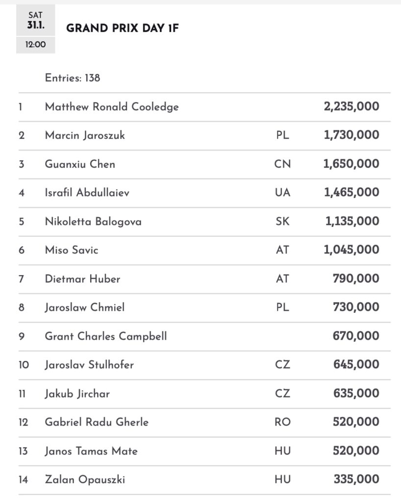 | 1A | 131 | 14 | Attila Almasi (HU): 2.995.000 |