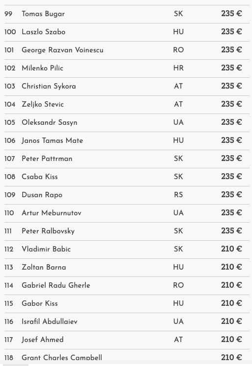Jaroszuk (PL – Platz 3, €7.422) und Bobak Jan (SK – Platz 4, €6.834) waren ebenfalls Teil der Einigung.