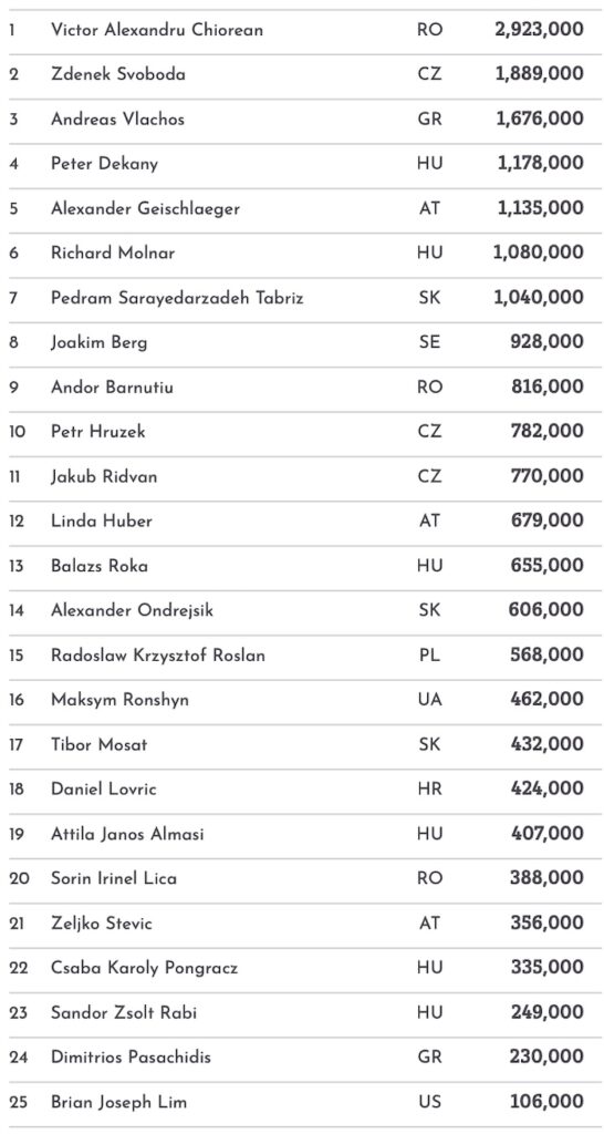 | 1B (CL Bonus) | 193 | 25 | Zoltan Toth (SK): 2.230.000 |