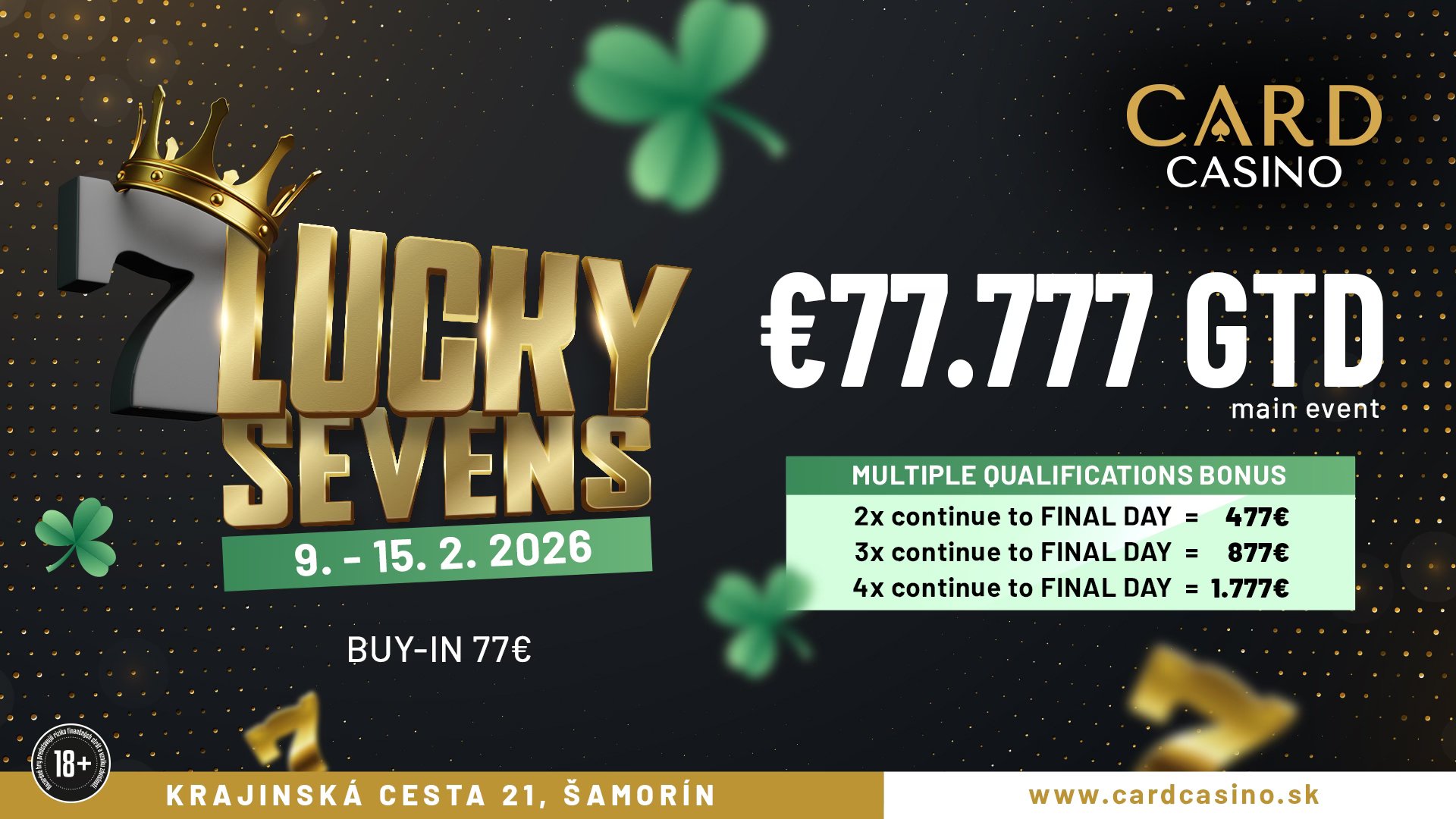 Beim Lucky Sevens im Card Casino Samorin (vormals Card Casino Bratislava) standen am Freitag gleich zwei Flights auf dem Turnierkalender.