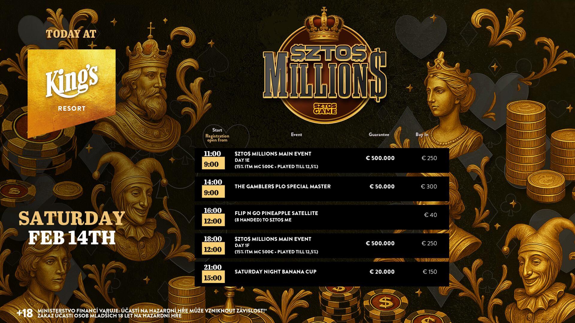 Beim Main Event der $ZTO$ Million$ powered by $ZTO$ Game fanden gestern im King’s Resort Rozvadov die beiden nächsten Starttage statt – und auch im King’s Casino Prag konnte man sein Ticket für Tag 2 buchen.