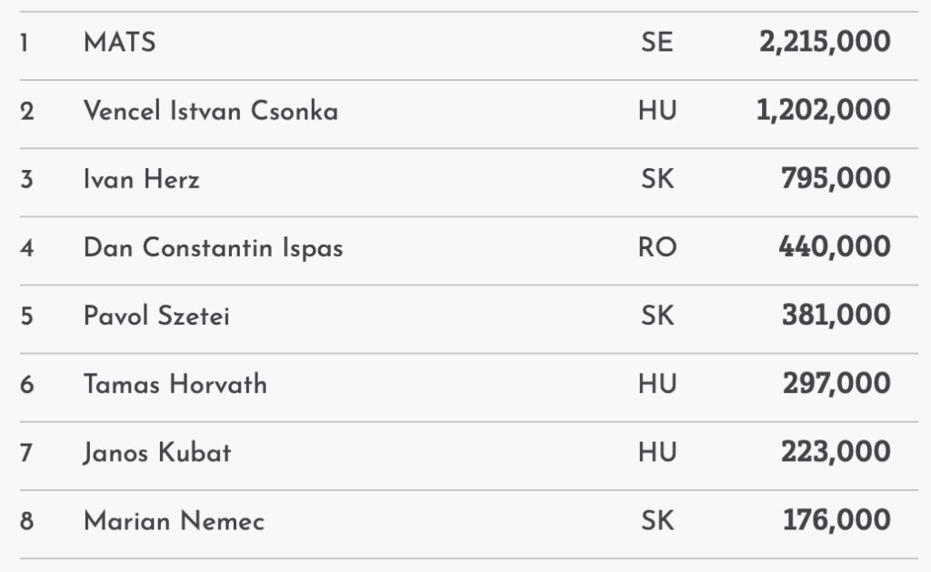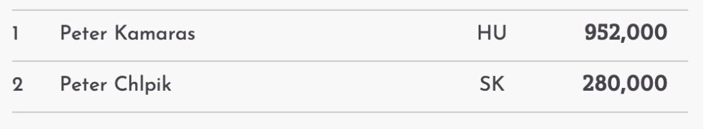 Zur späten Stunde waren es dann nicht mehr so viele Teilnehmer für den letzten Starttag des Tages. Lediglich 16 Anmeldungen sorgten für zwei Qualifikanten. Dabei packte Peter Kamaras aus Ungarn den größeren Stack ein.