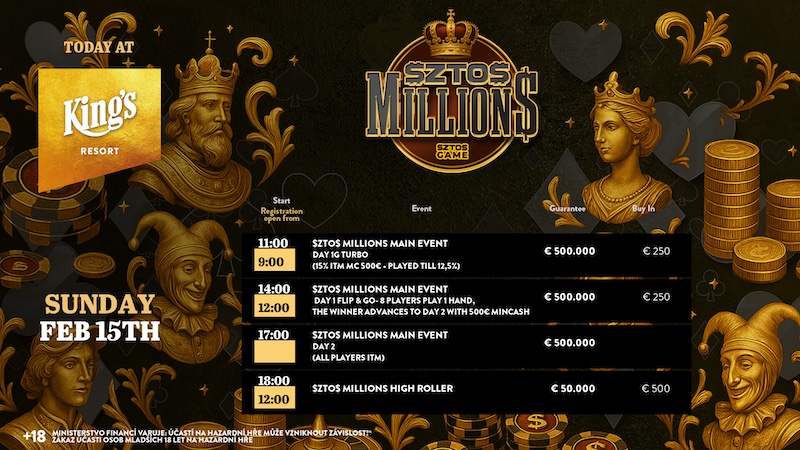 Beim €250 Main Event der $ZTO$ Million$ powered by $ZTO$ Game fanden gestern im King’s Resort Rozvadov die beiden nächsten Starttage statt.