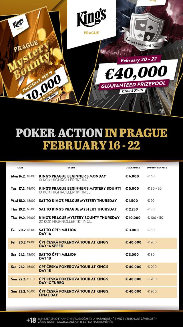 Im King’s Casino Prag ist heute Spielpause. Hier geht es am Montag um 18:00 Uhr weiter mit dem €60 King’s Prague Beginner’s Monday.