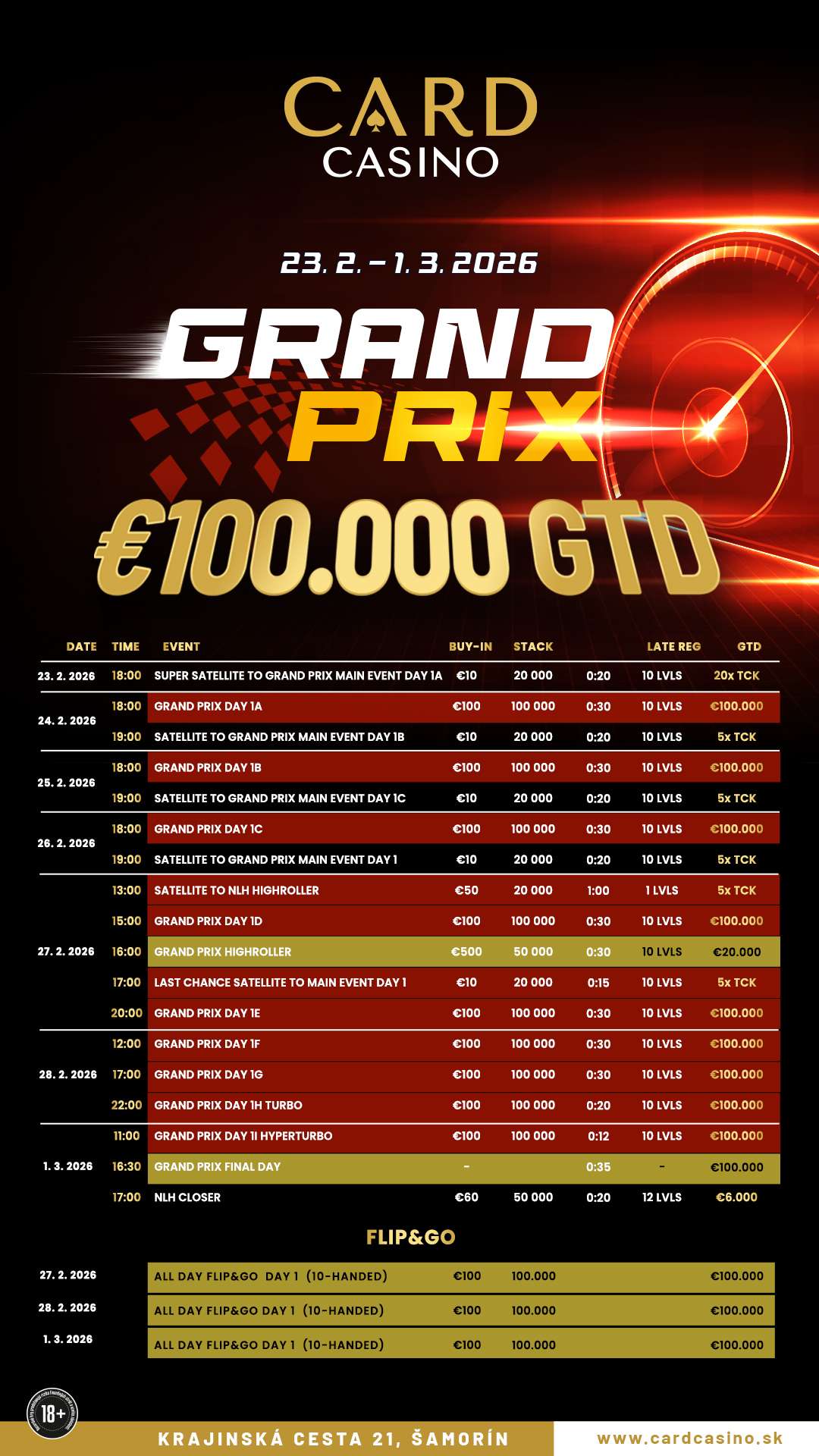 Die Arithmetik beim Grand Prix ist wie immer ganz simpel. Für ein Startgeld von €100 werden €100.000 Preisgeld garantiert und es gibt neben neun Startflights zusätzlich die Flip & Gos als Qualifikationschance.