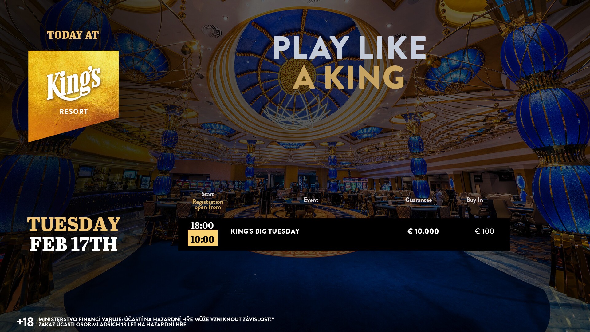 | € 3.000 | King’s Million EPC Mini Main Event, King’s Million EPC Monsterstack, King’s Million EPC Mystery Bounty, King’s Million European Poker Championship Super Main Event |