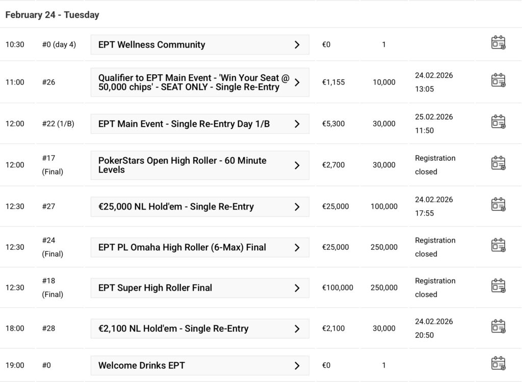 Das Schedule der PokerStars EPT Paris: