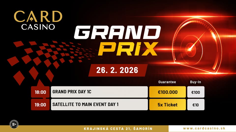 Im Card Casino SK in Samorin bei Bratislava wurde gestern der zweite von neun Flights des €100 Grand Prix (€100.000 GTD) angeboten.