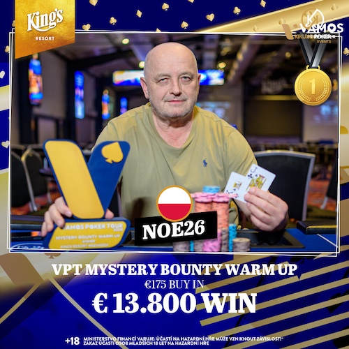 Die €100.000 Garantie konnte nicht geknackt werden und so freuten sich alle ITM-Spieler besonders über etwas extra Value. Als Sieger konnte am Ende des Turniers ein Pole mit dem Spitznamen ‚Noe26‚ hervorgehen. Er konnte dafür €13.600 plus Bounties und die erste VPT Trophäe der Serie mit nach Hause nehmen.