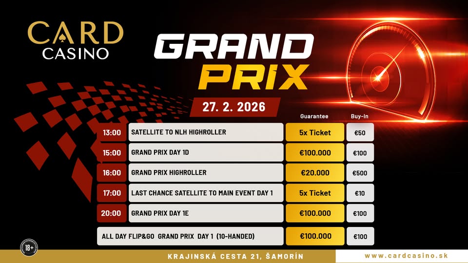Im Card Casino SK in Samorin bei Bratislava wurde gestern der dritte von neun Flights des €100 Grand Prix (€100.000 GTD) angeboten.