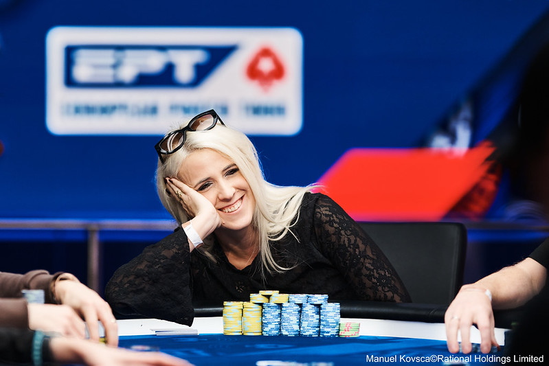 Die gute Nachricht ist, dass wir noch weitere drei DACH-Hoffnungen im Rennen haben. Joachim Meisoll aus Deutschland belegt momentan Rang 34 in Chips (33 Big Blinds) und wir haben zwei Legenden in den Top 5 Chipcounts! Felix ‚xflixx‘ Schneiders (DE) hat momentan genug Chips für Rang 5 (115 Big Blinds) und die Österreicherin Jessica Teusl für Rang 4 (125 Big Blinds)!