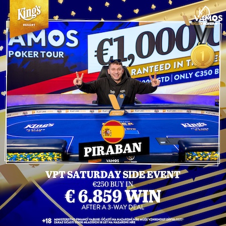 Im King’s Resort Rozvadov wurde gestern Rahmen des Vamos Poker Tour (VPT) Festival neben dem Main Event zwei weitere Turniere veranstaltet: das PLO Championship sowie das Saturday Side Event. Im King’s Casino Prag gab es einen weiteren Startflight der 1 Million Crown Series.