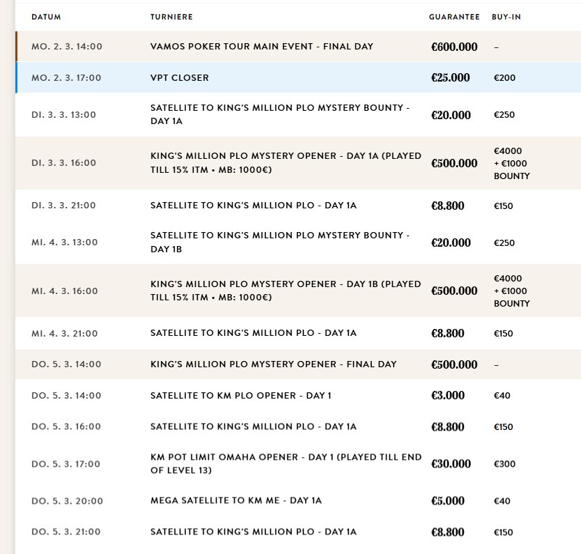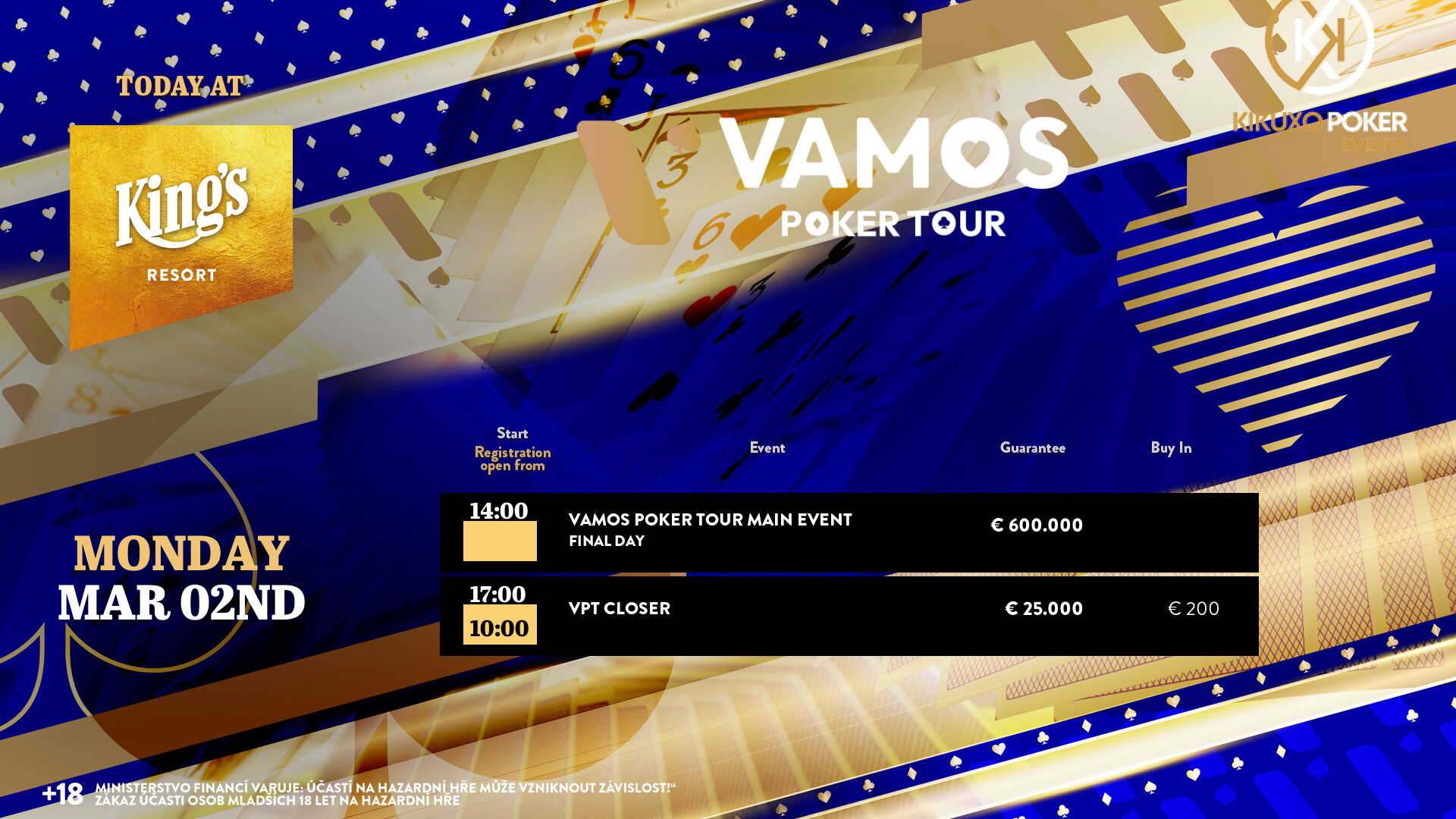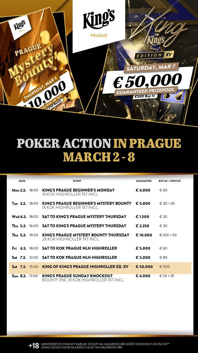 Im King’s Resort Rozvadov wurde gestern zum Abschluss der Vamos Poker Tour Festival das VPT The Saver gespielt! Im King’s Casino Prag wurde das 1 Million Crown Series ausgespielt.