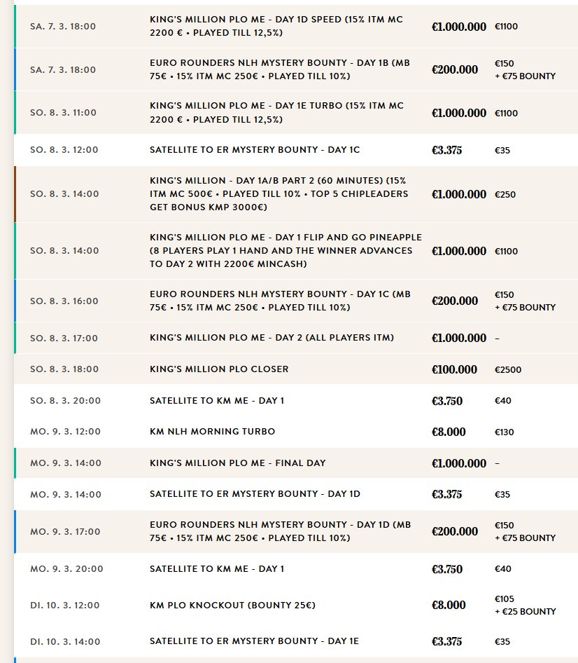 Die €80 1 Million Crown Series im King’s Casino Prag in der tschechischen Hauptstadt empfing über die Startflights 216 Spieler, die für insgesamt satte 549 Entries sorgten.