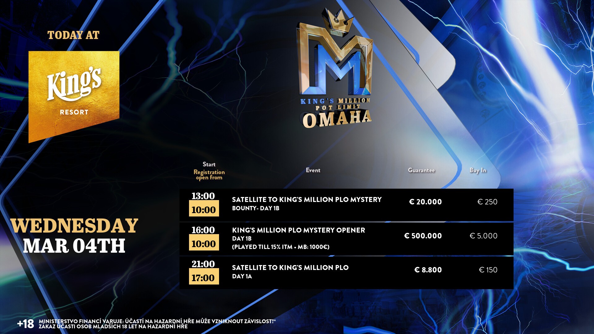 In dieser Woche steht das King’s Resort Rozvadov ganz im Zeichen der King’s Million Pot-Limit Omaha. Fette €2 Millionen Preisgeld werden bei diesem Festival garantiert und die Liebhaber der Pokervariante mit den vier Karten kommen voll auf ihre Kosten.