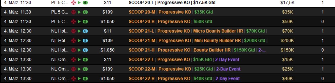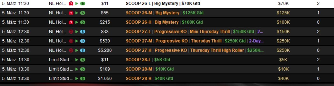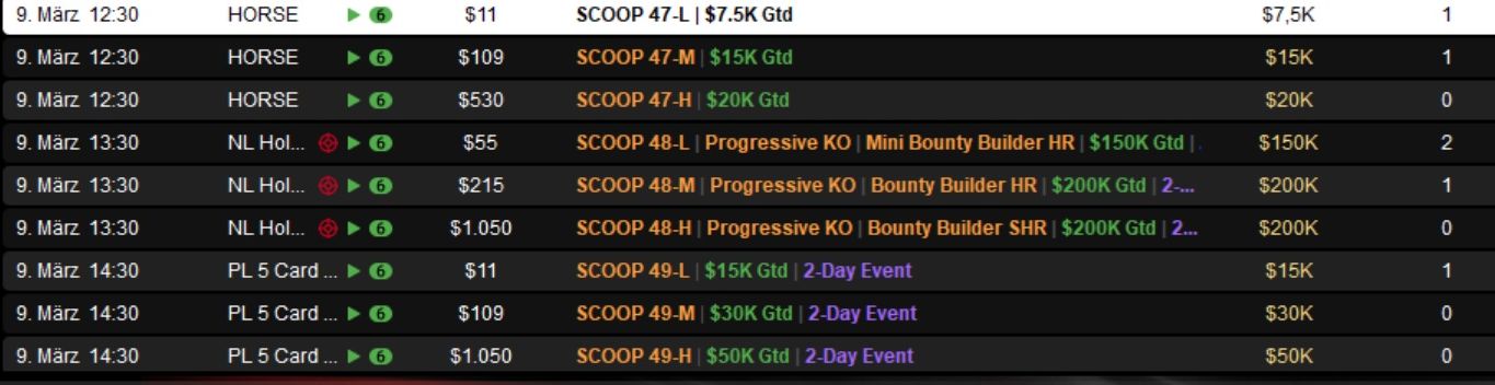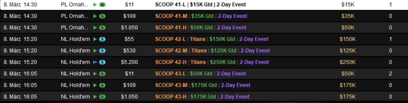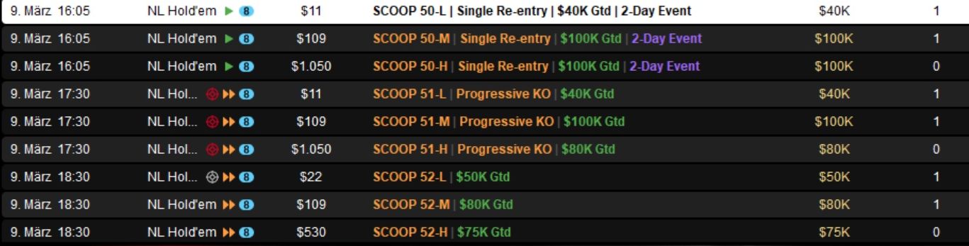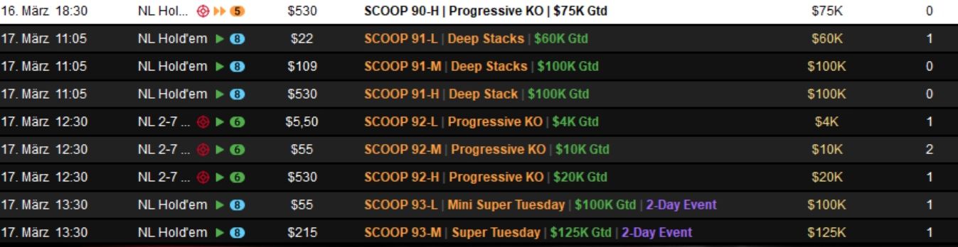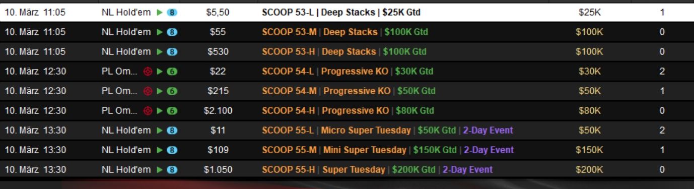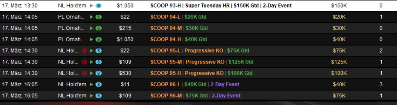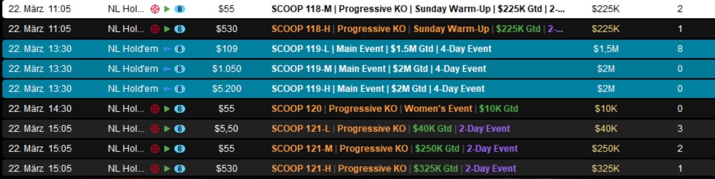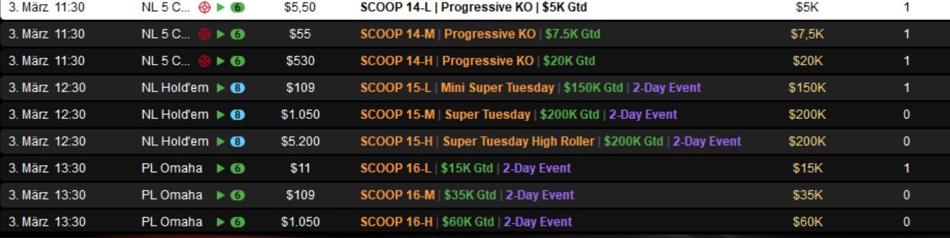Die Spring Championship of Online Poker (SCOOP) 2026 auf PokerStars ist ein wahrer Marathon und ging am Dienstag in die nächste Runde.