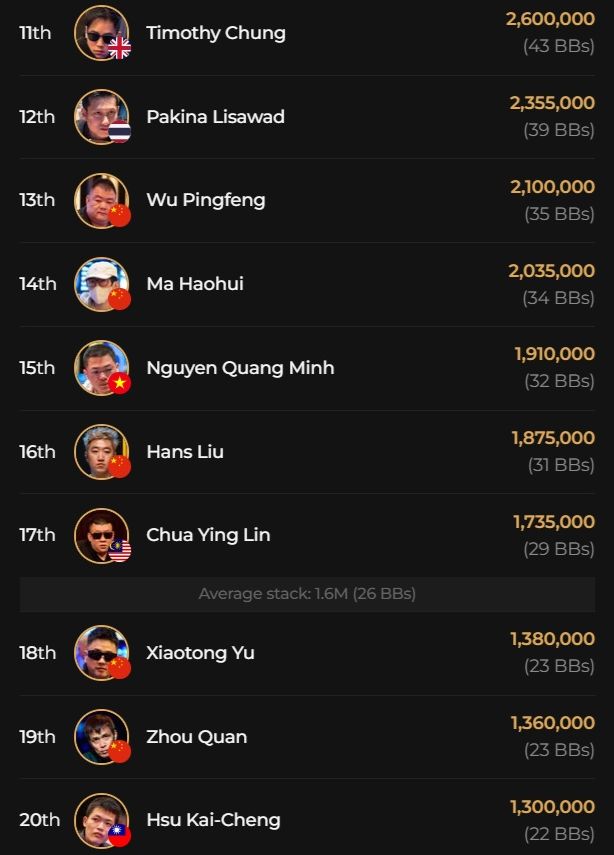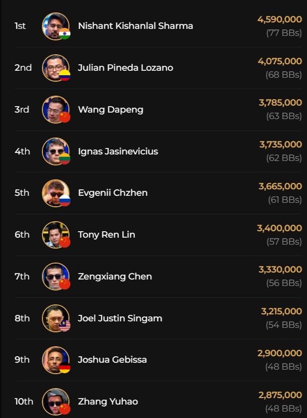 Mit Joshua Gebissa hat sich ein deutscher Spieler eine aussichtsreiche Position erspielt, weitere bekannte Teilnehmer waren Thomas Eychenne, Ren Lin oder Kiat Lee.
