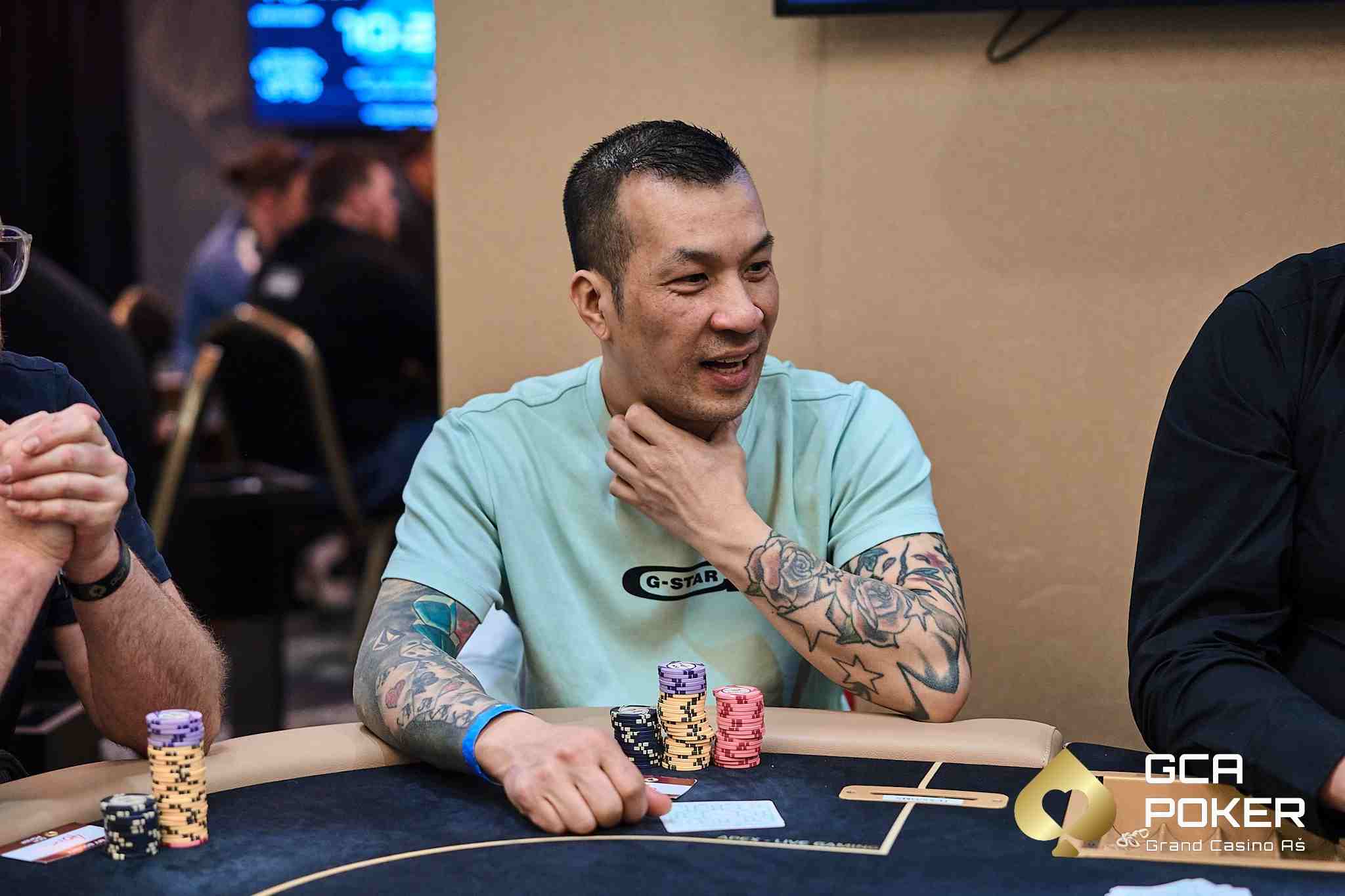 Die vierstelligen Payouts am Finaltisch schnappten sich „Günni“ (€1.120), „Poki Kodi“ (€1.615), Marcel Albert (€2.280) und „Christian“ (€3.030) als erste. Nach einem harten Fight war es Andreas „Andy Pi“ Pirmann, der auf Rang 5 mit €3.930 Payout das Main Event verlassen musste, als er in Pocket kings pushte.