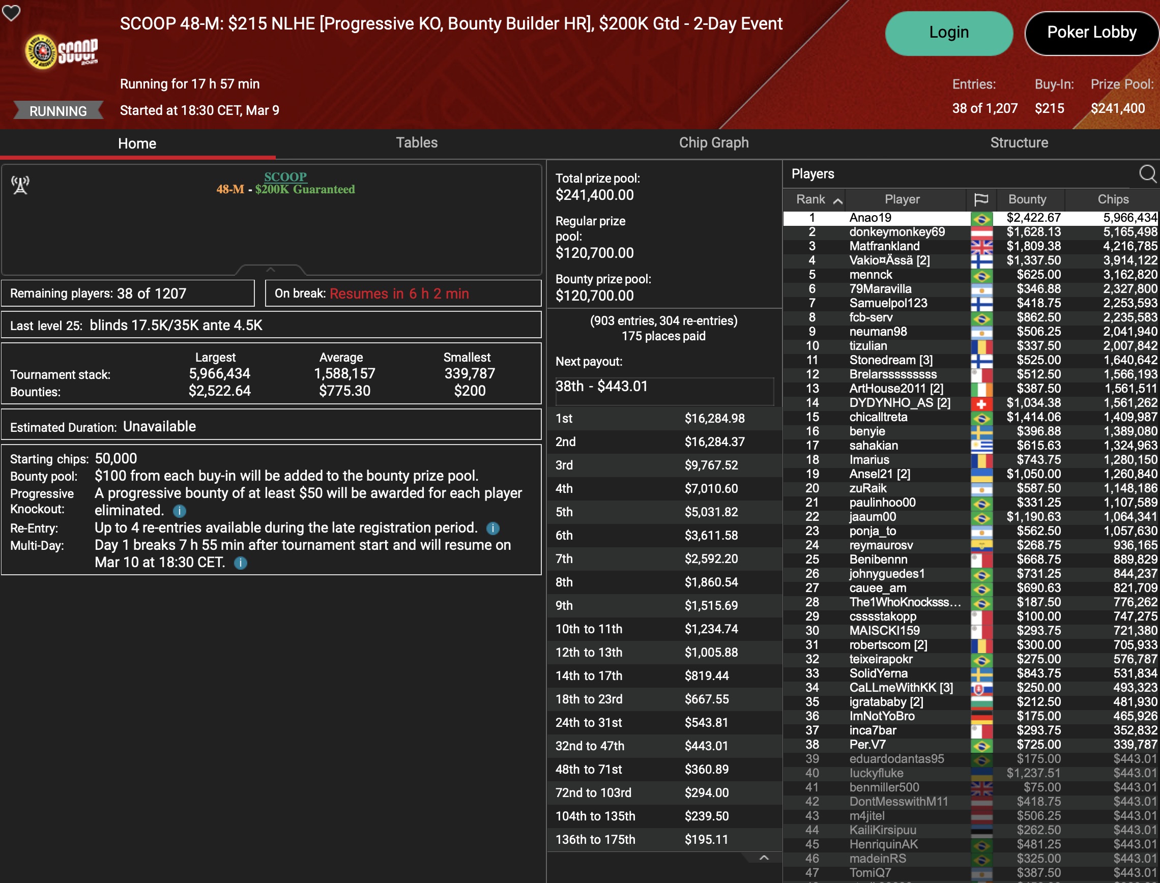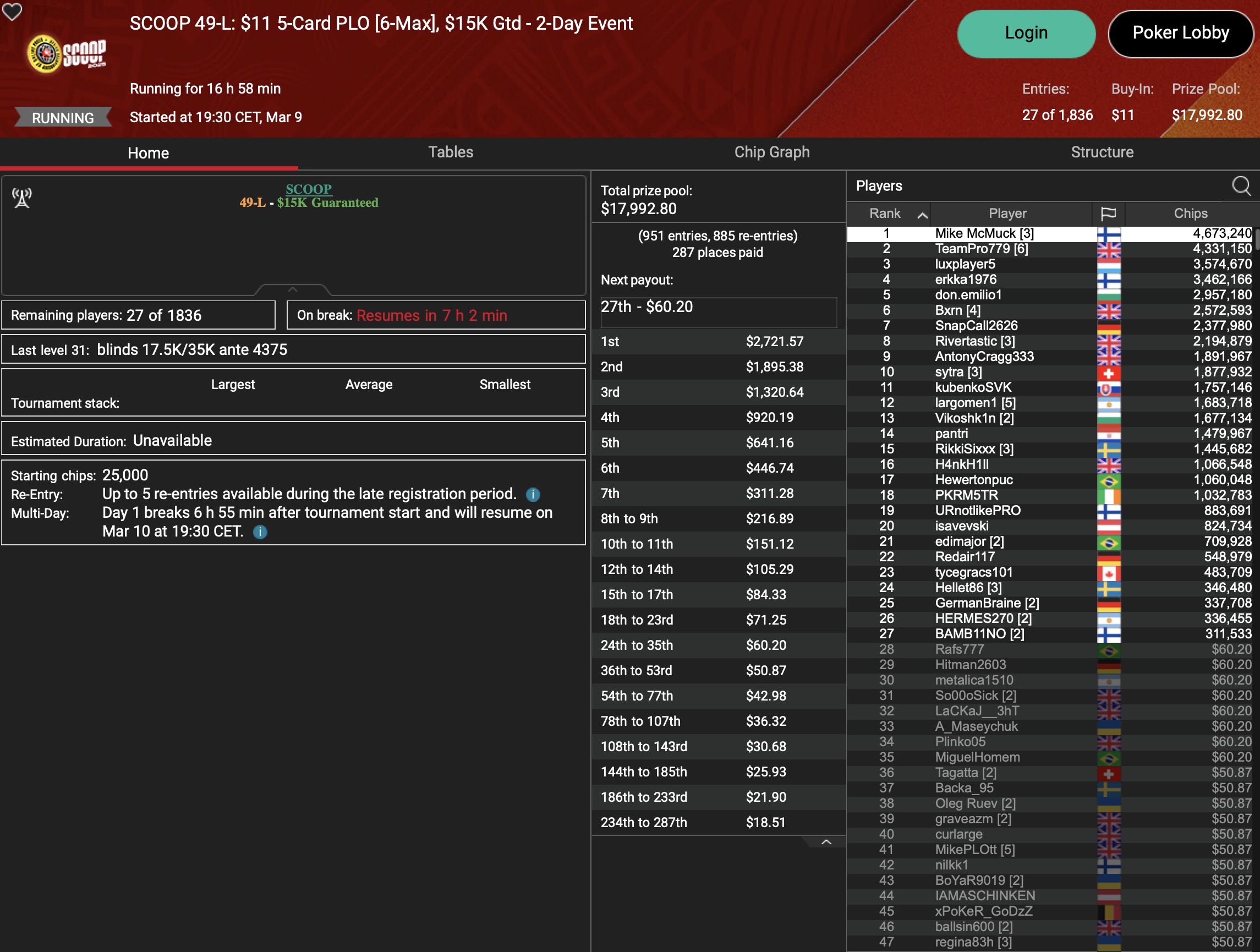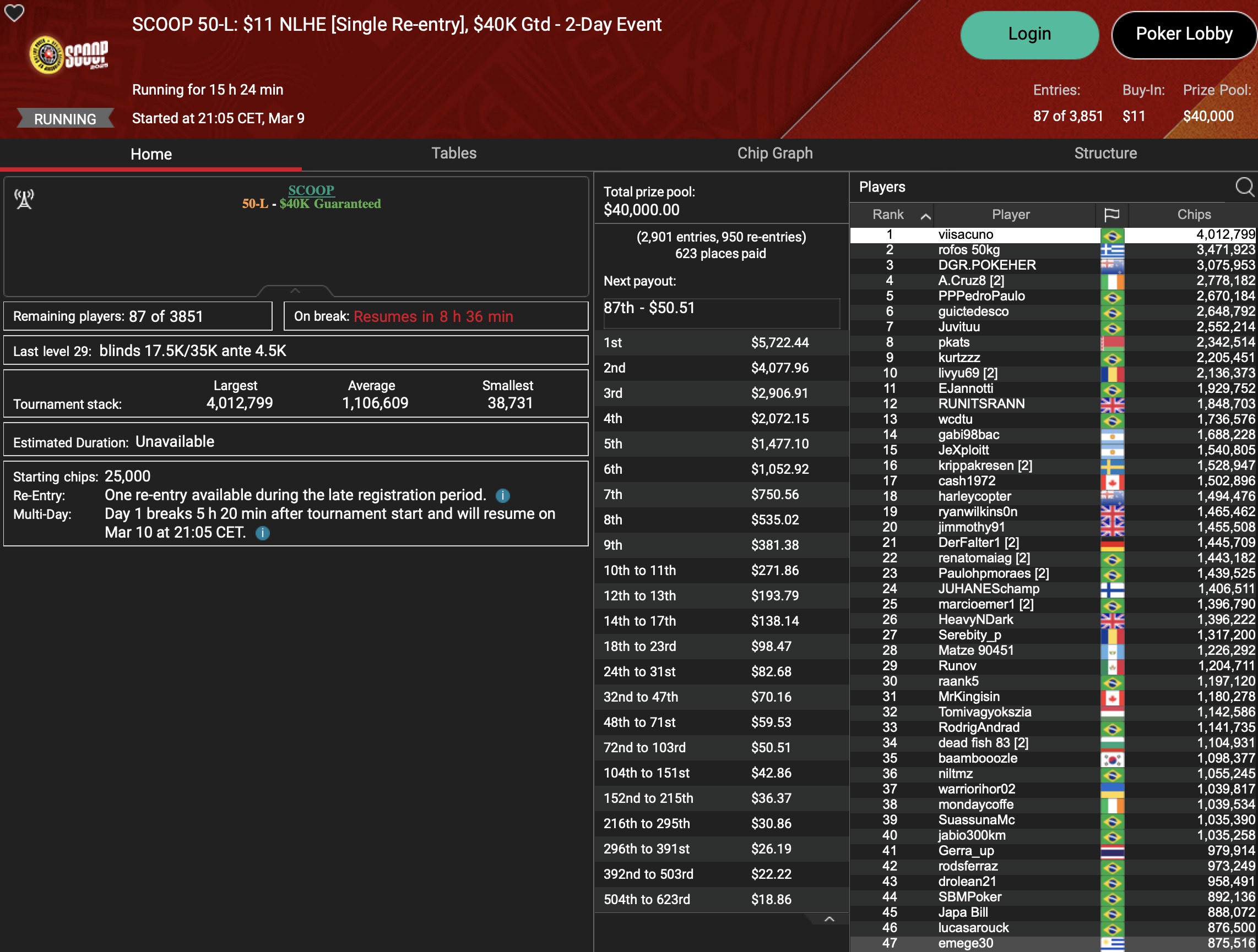 Sunday Million (SCOOP Event #40-M) – Day 2