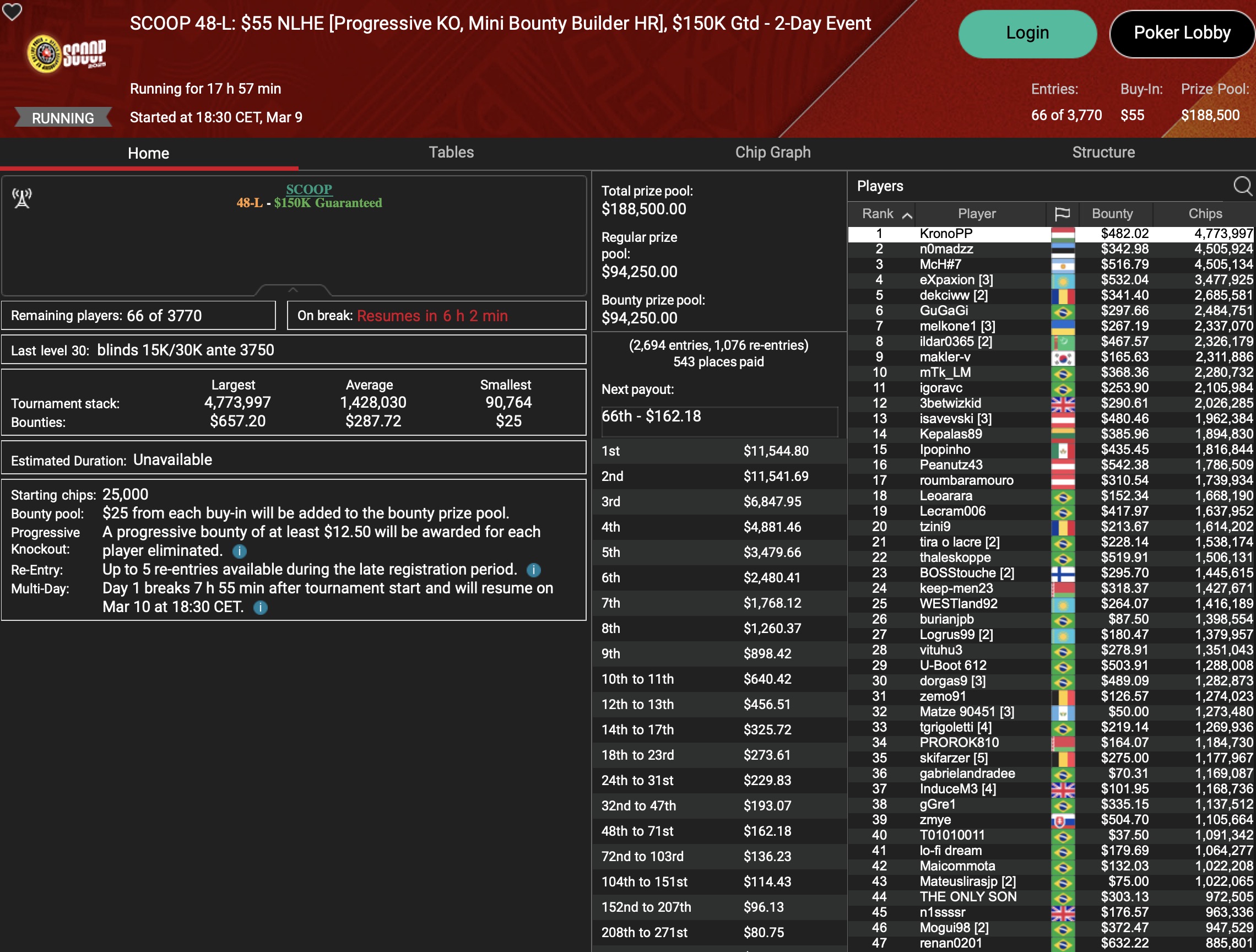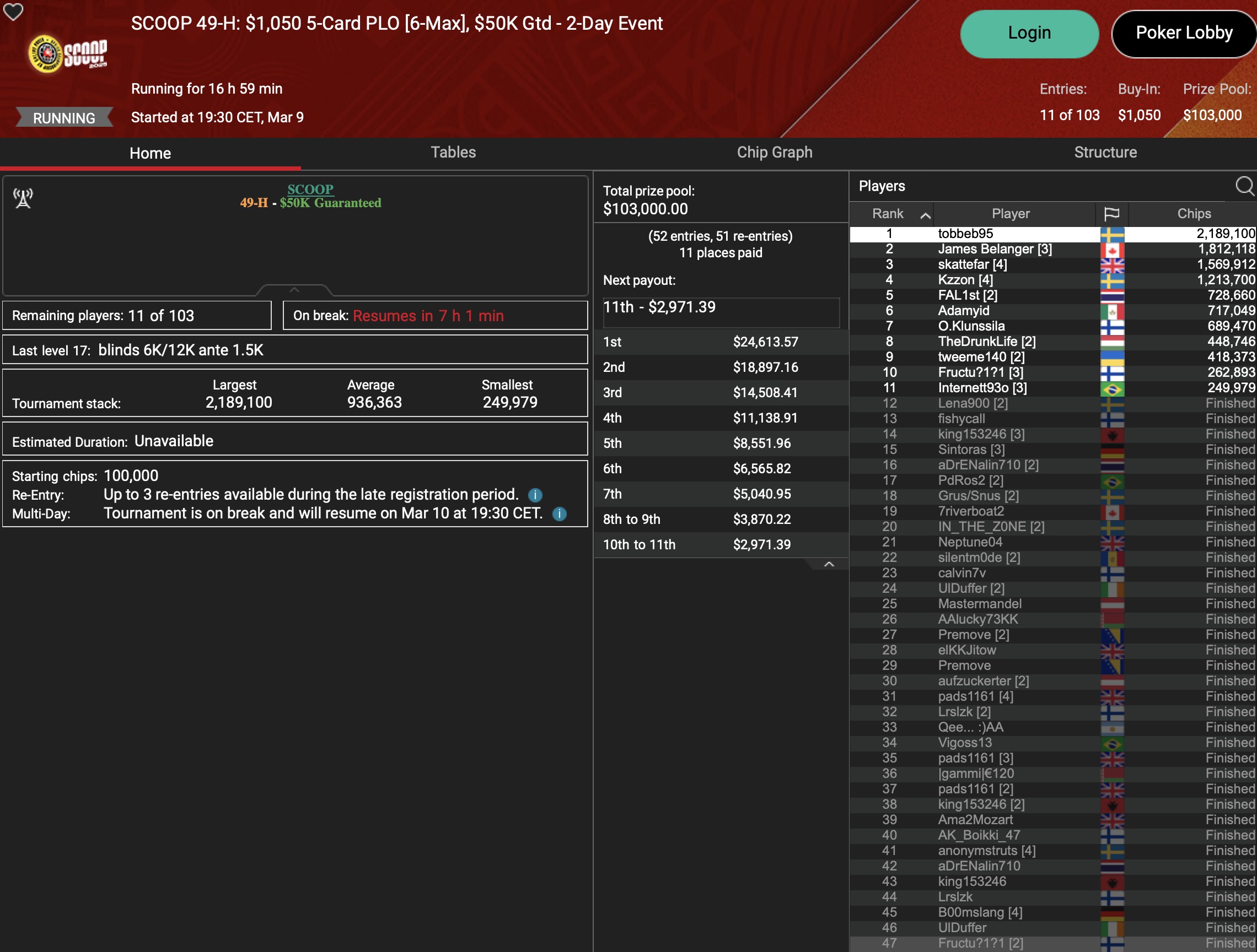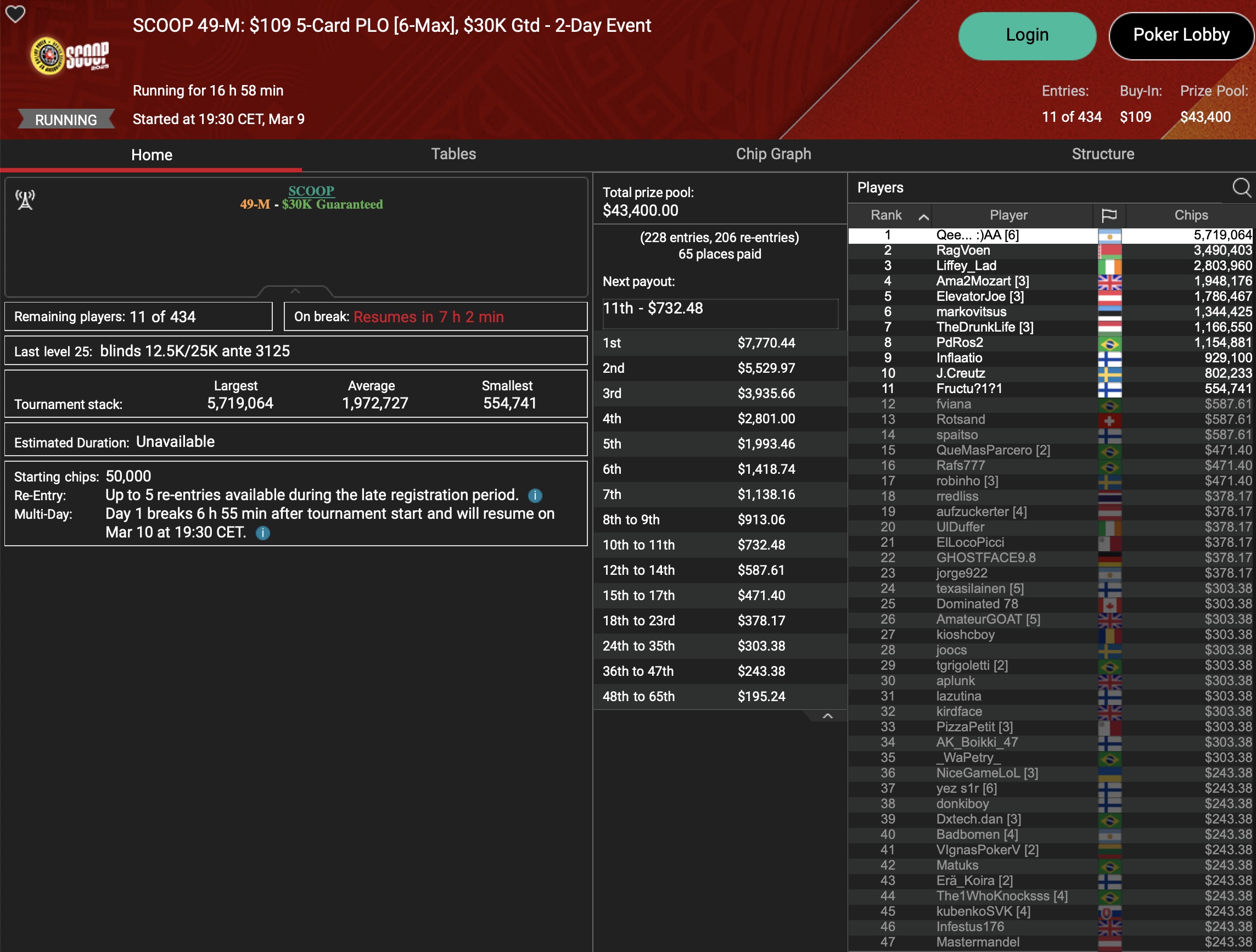 Sunday Million (SCOOP Event #40-M) – Day 2