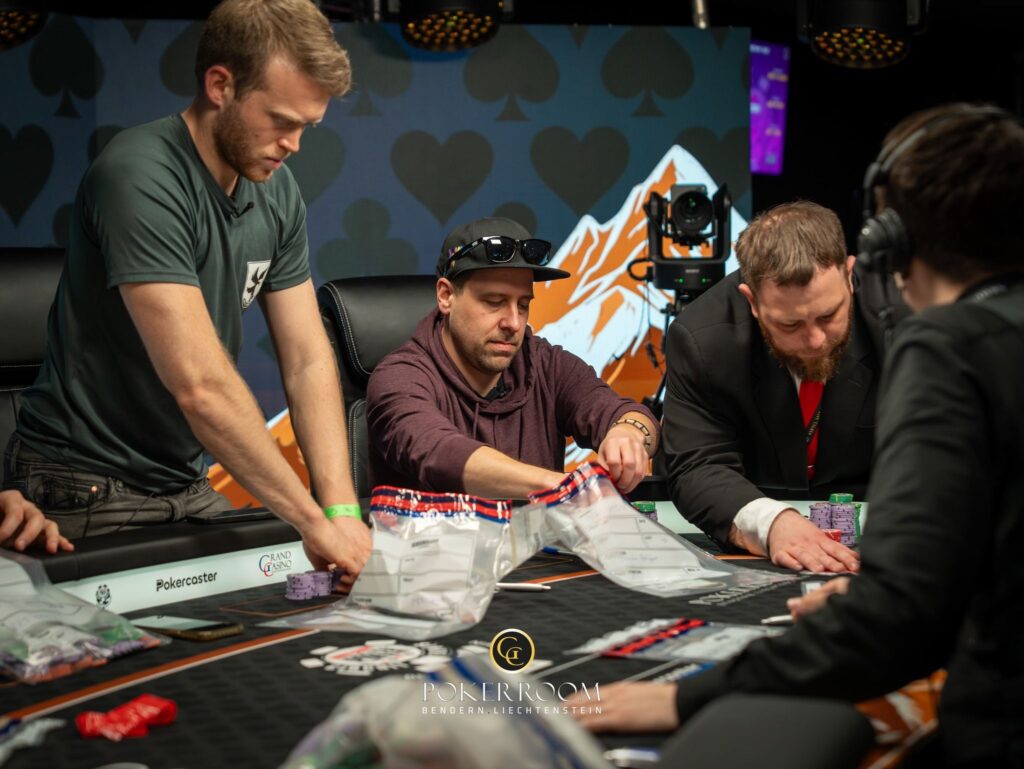 In das heutige Finale (ab 13:00 Uhr) haben es 3 Spieler aus dem D-A-CH-L geschafft: Killian Kramer (AUT) wird bei Blinds von 50.000/100.000-100.000 mit 3.205.000 zurückkehren. Florian Geiger (GER) liegt mit einem 6.580.000er Stack aussichtsreich auf Rang 3 im Chipcount. Knapp vor ihm konnte Benjamin Hammann (FRA) 6.885.000 Jetons eintüten. Als Chipleader in Tag 3 hereingegangen, und mit mehr als doppelt so vielen Chips als Chipleader aus Tag herausgekommen ist Angelo Arossi. Der Schweizer ist weiter die dominierende Kraft und kann heute am Final Table auf einen Stack von 9.890.000 Chips blicken!