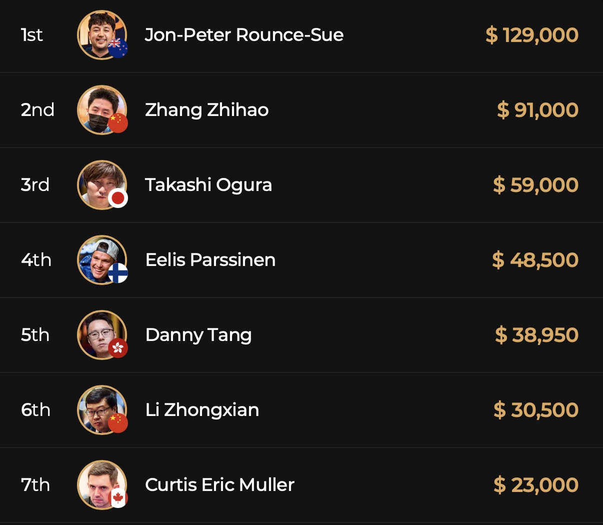 Der Final Table im $6k Pot-Limit Omaha 6-handed Event war etwas internationaler als die bisherigen Turniere. Oftmals werden im Triton Schedule in Asien die PLO Turniere durch Shortdeck (6+) Hold’em Turniere ersetzt. Von daher witterten etliche nicht-asiatische Omaha-Spezialisten in dem überschaubaren 90-köpfigen Feld die Chance auf einen Titel. Unter den Top-9 sollten dann auch zwei Nordamerikaner, ein Europäer und ein Ozeanier landen. Für den Finnen Eelis Parssinen war auf Rang 4 Schluss. Doch die Trophy aus Event #12 sollte tatsächlich nicht in Asien landen, sondern wird nach der Triton Series im Gepäck von Jon-Peter Rounce-Sue auf dem Weg nach Neuseeland verstaut sein. Der Kiwi erhielt für seinen PLO Erfolg $129.000 aus dem $499.950 Preispool.