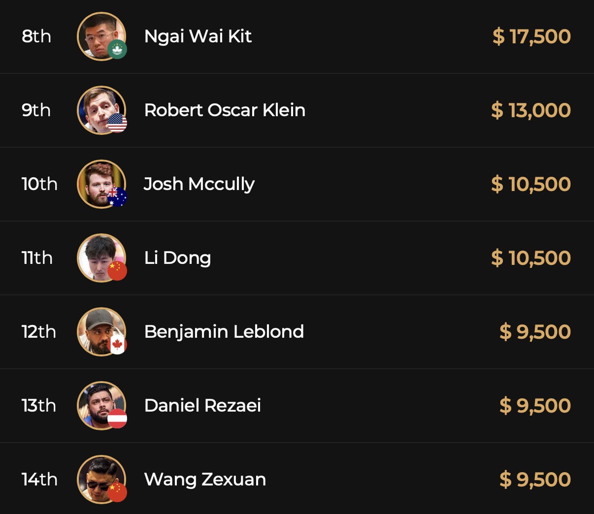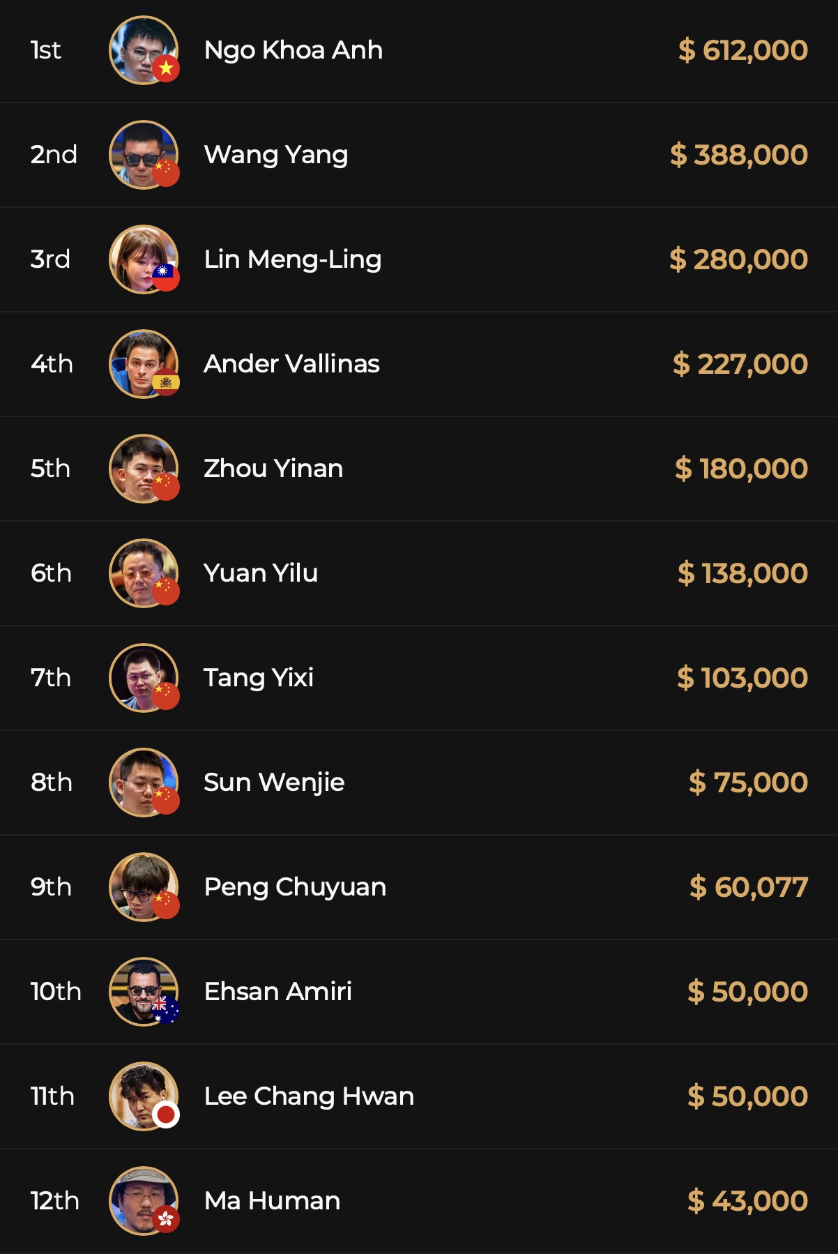 Das 8. Event der Triton ONE Series ließ ebenfalls keine Spannung vermissen. Von den 347 Entrys hätte mit Lin Meng-Ling beinahe die nächste der stark aufspielenden Frauen einen Titel geholt. Der sollte jedoch dem Chinesen Ngo Khoa Anh vorbehalten sein, in dessen Richtung am Final Table wirklich alles lief. Mit nur 6 BBs war er als absoluter Shortstack an den Finaltisch gekommen. Er sollte ihn jedoch erst als Letzter mit $612.000 Siegprämie aus dem $3.154.577 Preispool verlassen!