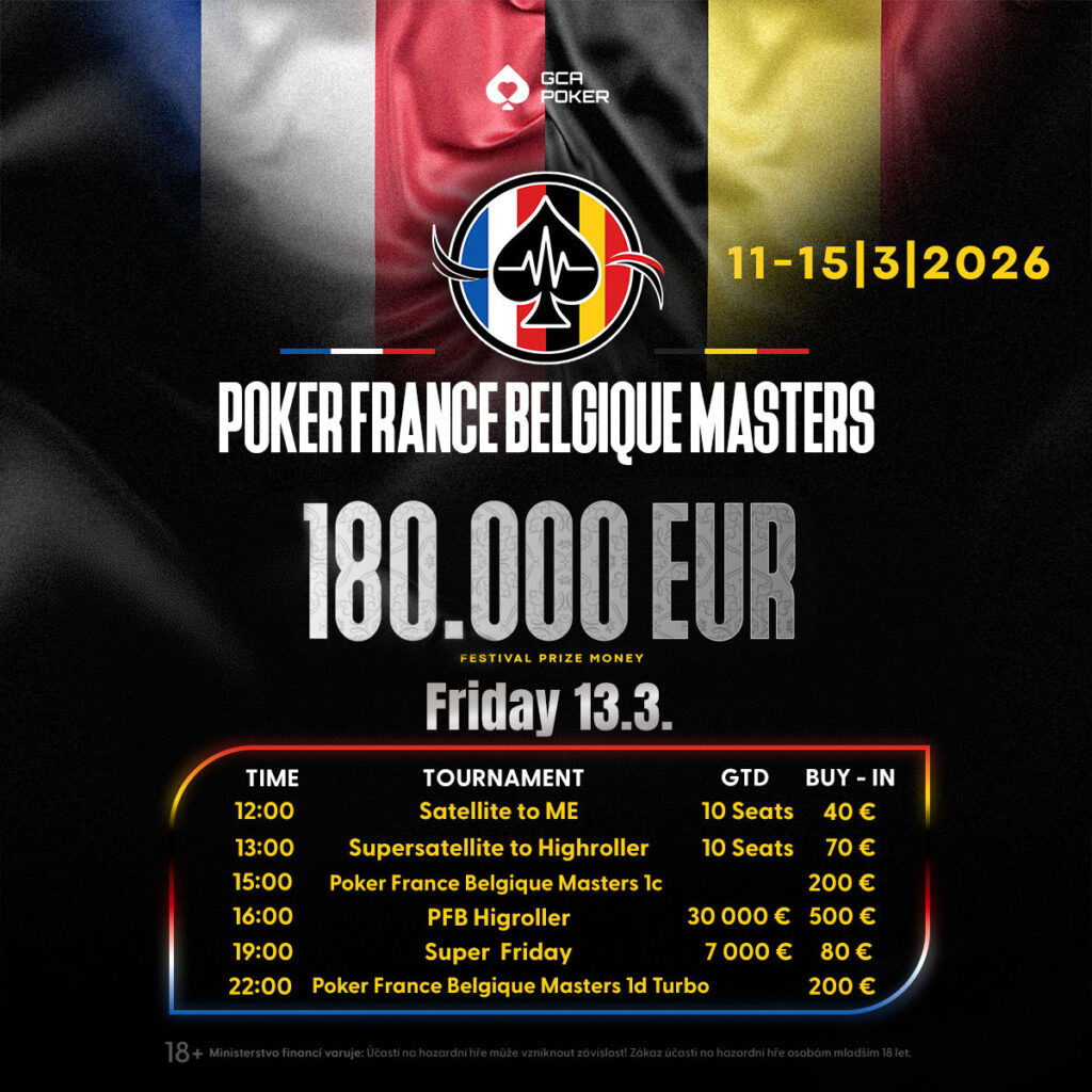 Nach einem ausbaufähigen ersten Flight mit lediglich 22 Entrys im Poker France Belgique Masters Main Event, kamen am Freitag ab 18:00 Uhr 29 Spieler*innen an den GCA Turniertischen zusammen, die im Kampf um die €100.000 Garantie noch 9 Re-Entrys für das Buy-In von €170+€30 nahmen. Am Ende des Spieltages im Level 5k/10k-10k sollten 5 Spieler Chiptüten für den Finaltag am Sonntag (13:00 Uhr) an ihren Plätzen finden.