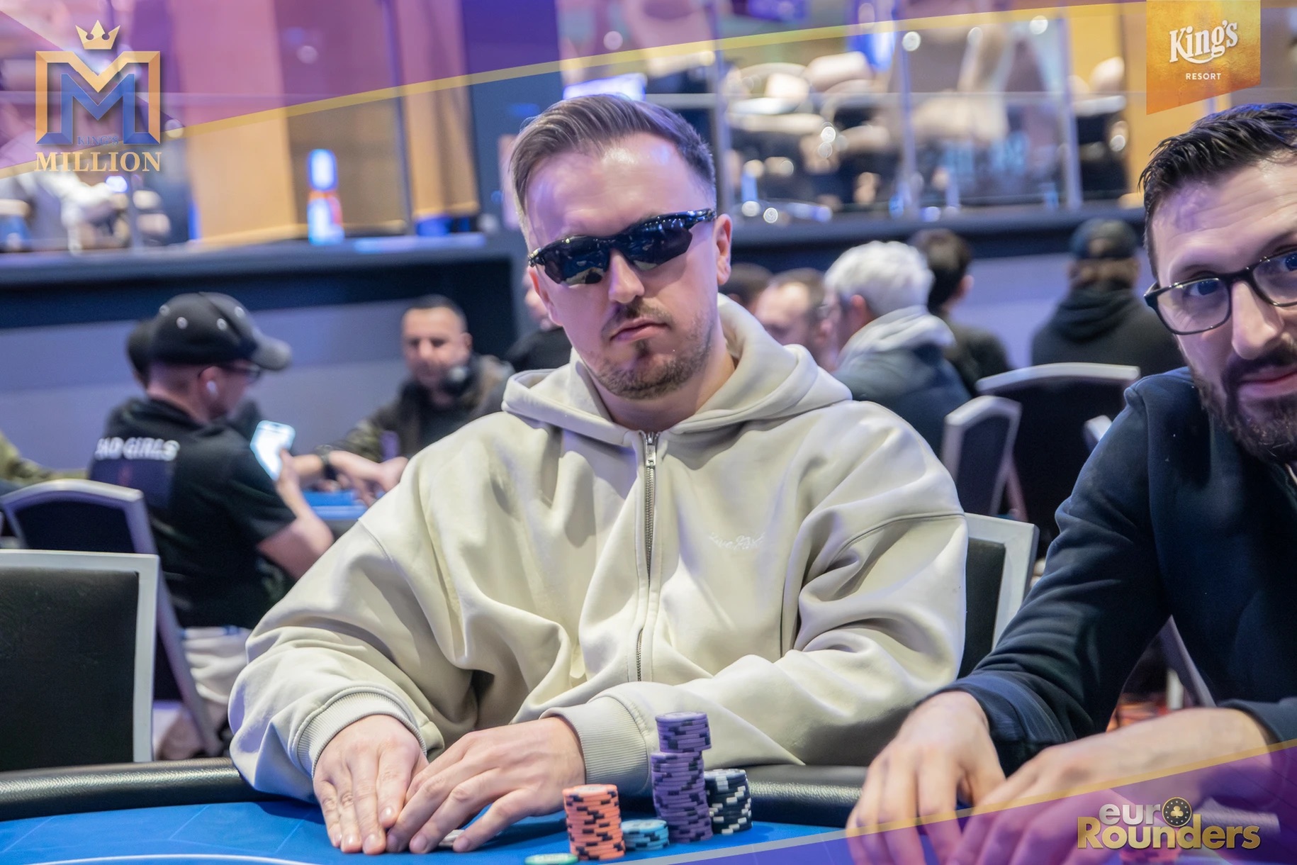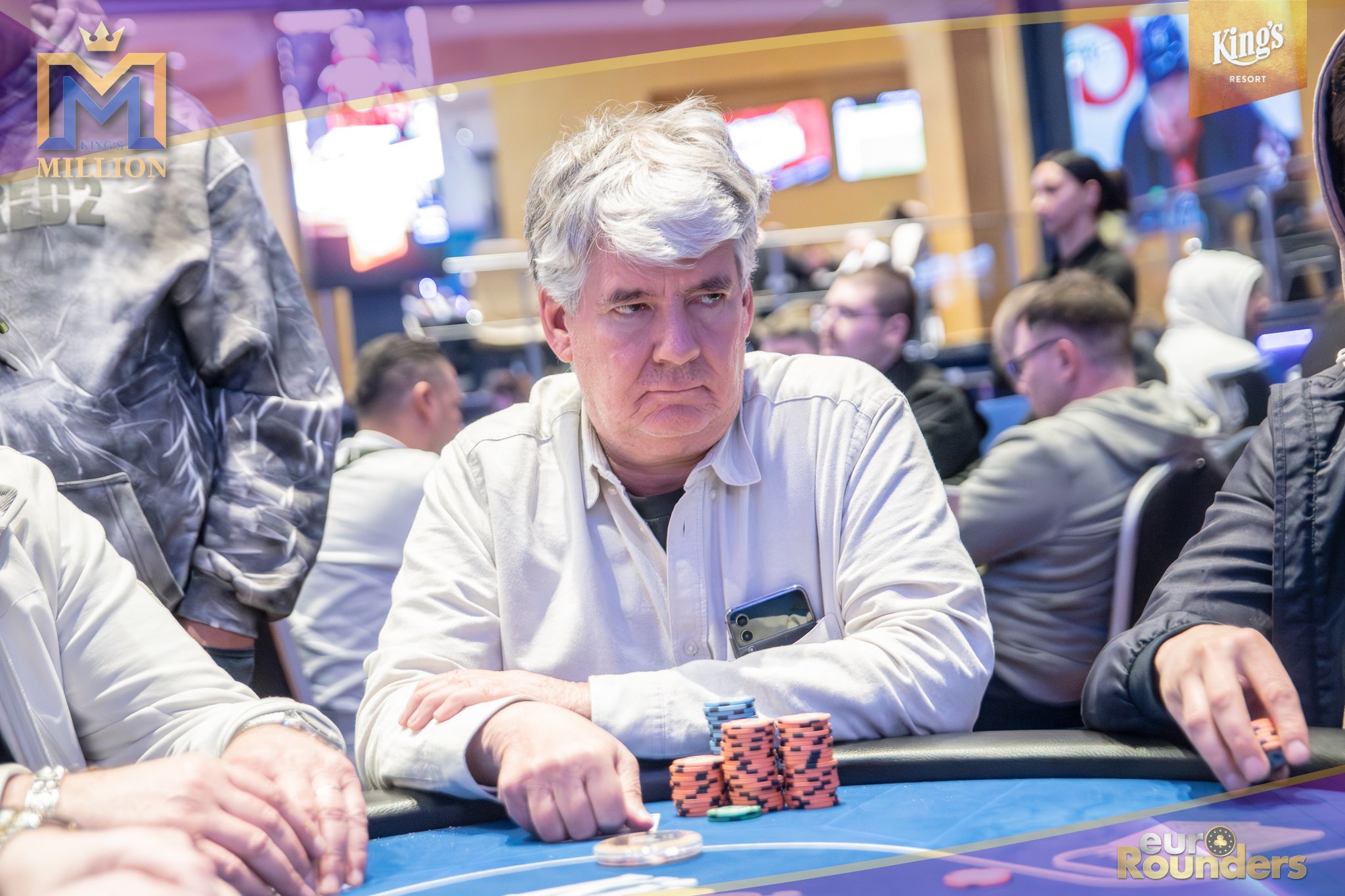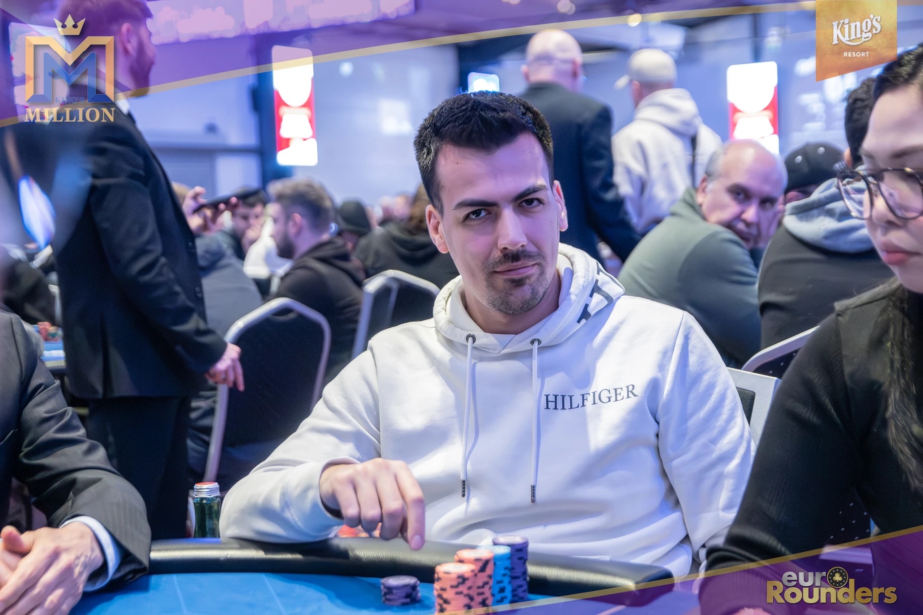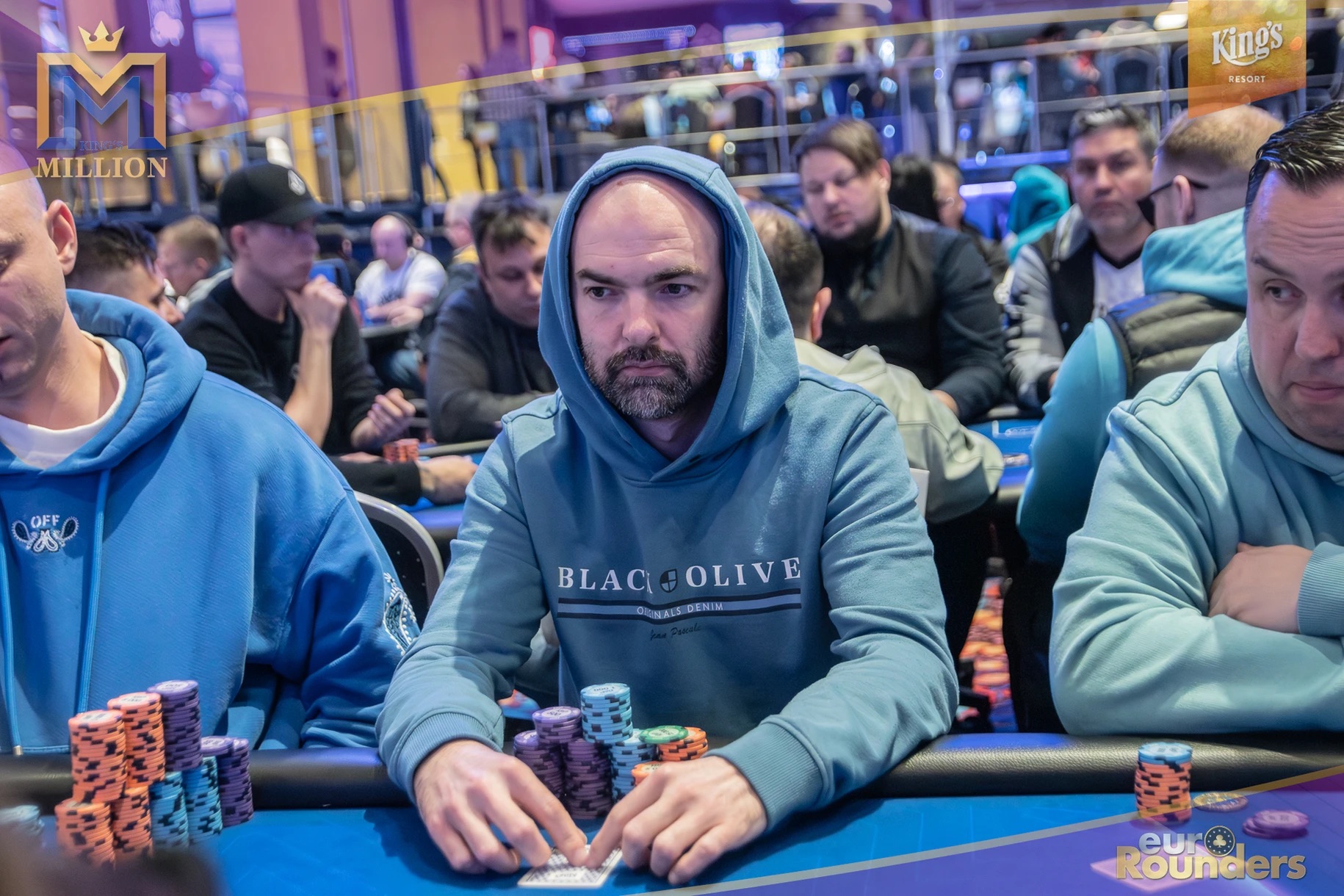 Die legendäre King’s Million mit der namensgebenden €1.000.000 Preispoolgarantie umfasst 11 Starttage (9 Flights 1A bis 1I in Rozvadov + 1 Flight in Prag + 1 Flip and Go) und insgesamt 4 Spieltage. Für das Buy-In von €250 erhält man 40.000 Starting Chips und 40 Minuten Spielzeit pro Blindlevel, 30 in den Speed Flights. An den Tagen 1A und 1B hatte man sogar die Möglichkeit 60-minütige Level zu spielen. Dort wurden die bis zum Level 8 in Part 1 getrennten Starttage dann in Part 2 zusammengelegt. Für die Top 5 von Tag 1AB Part 2 gab es fünf Chipleader-Bonus-Packages à €3.000. Ansonsten sind an jedem anderen regulären Spieltag €1.150 als Chipleader Bonus vorgesehen. 15% jedes Flights schaffen es mit €500 Min-Cash in-the-money. Danach wird ohne weiteres Hand-for-Hand-Play jeweils runter bis auf 10% der Flightteilnehmer*innen gespielt, die ihre Chips dann in Tag 2 mitnehmen. An Tag 2, 3 und am Finaltag sind die Blinds dann 60 Minuten lang. Für die Top-10 im Finale (DI, 14:00 Uhr) wird es dann noch jeweils ein €3.000 Package für die King’s Million European Poker Championship (KM EPC) geben.