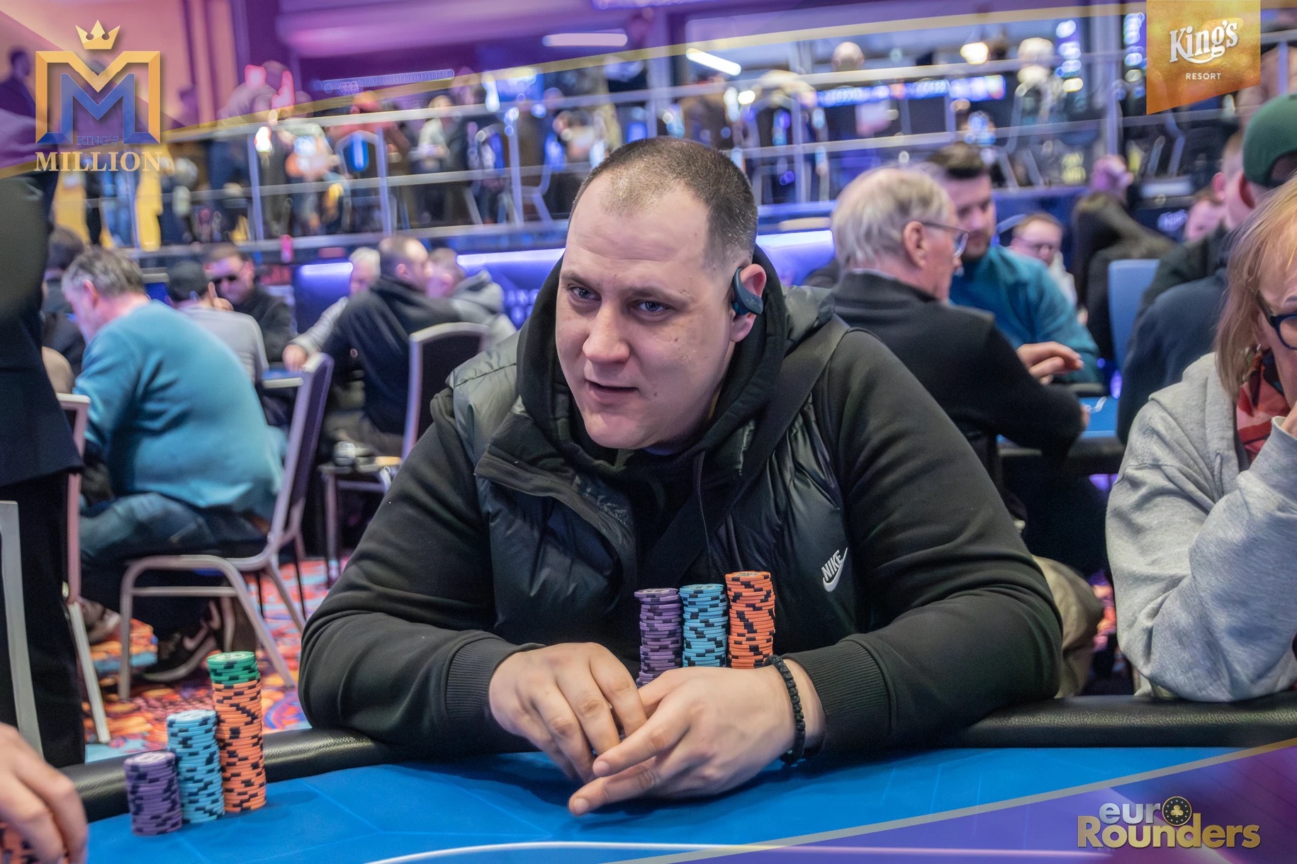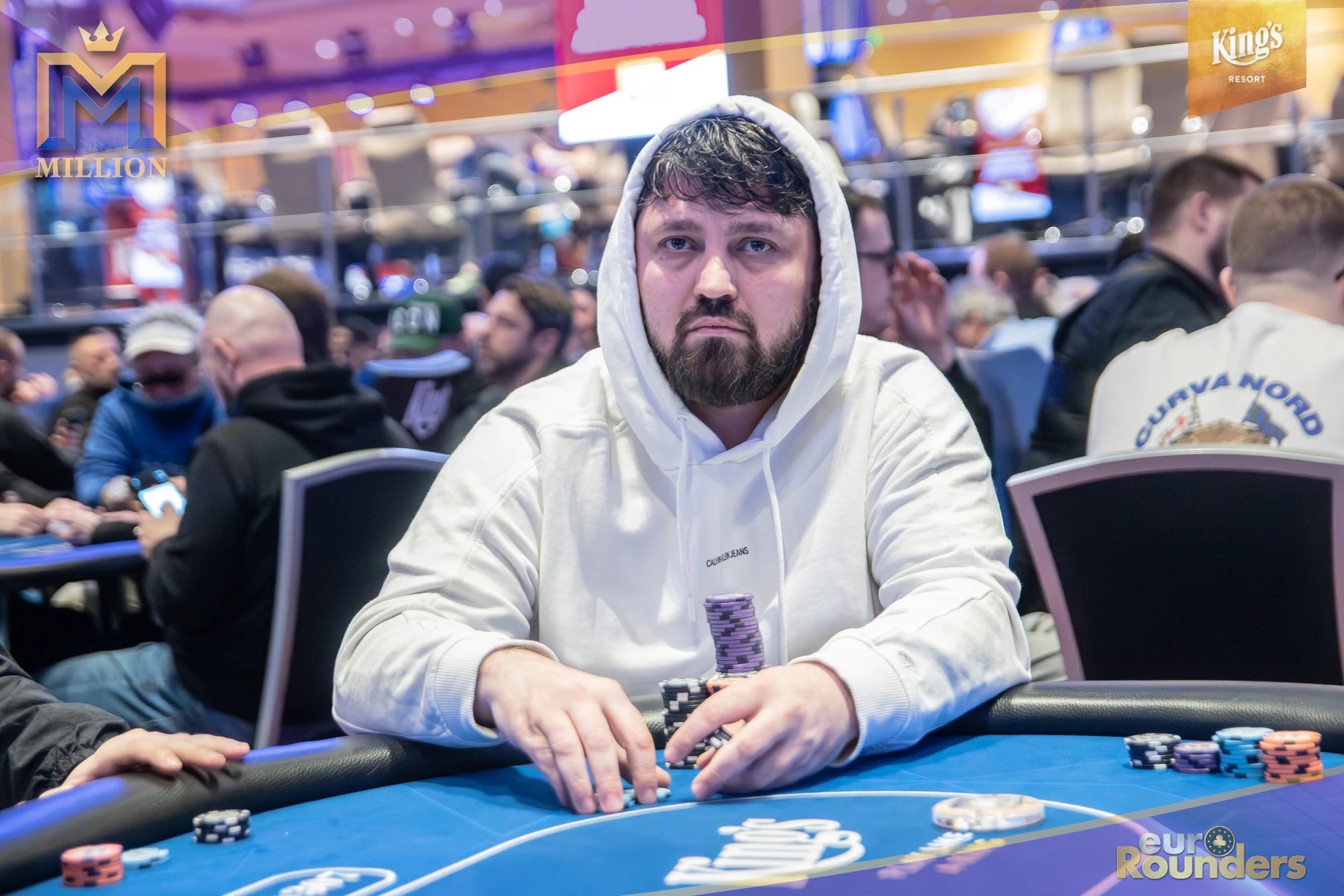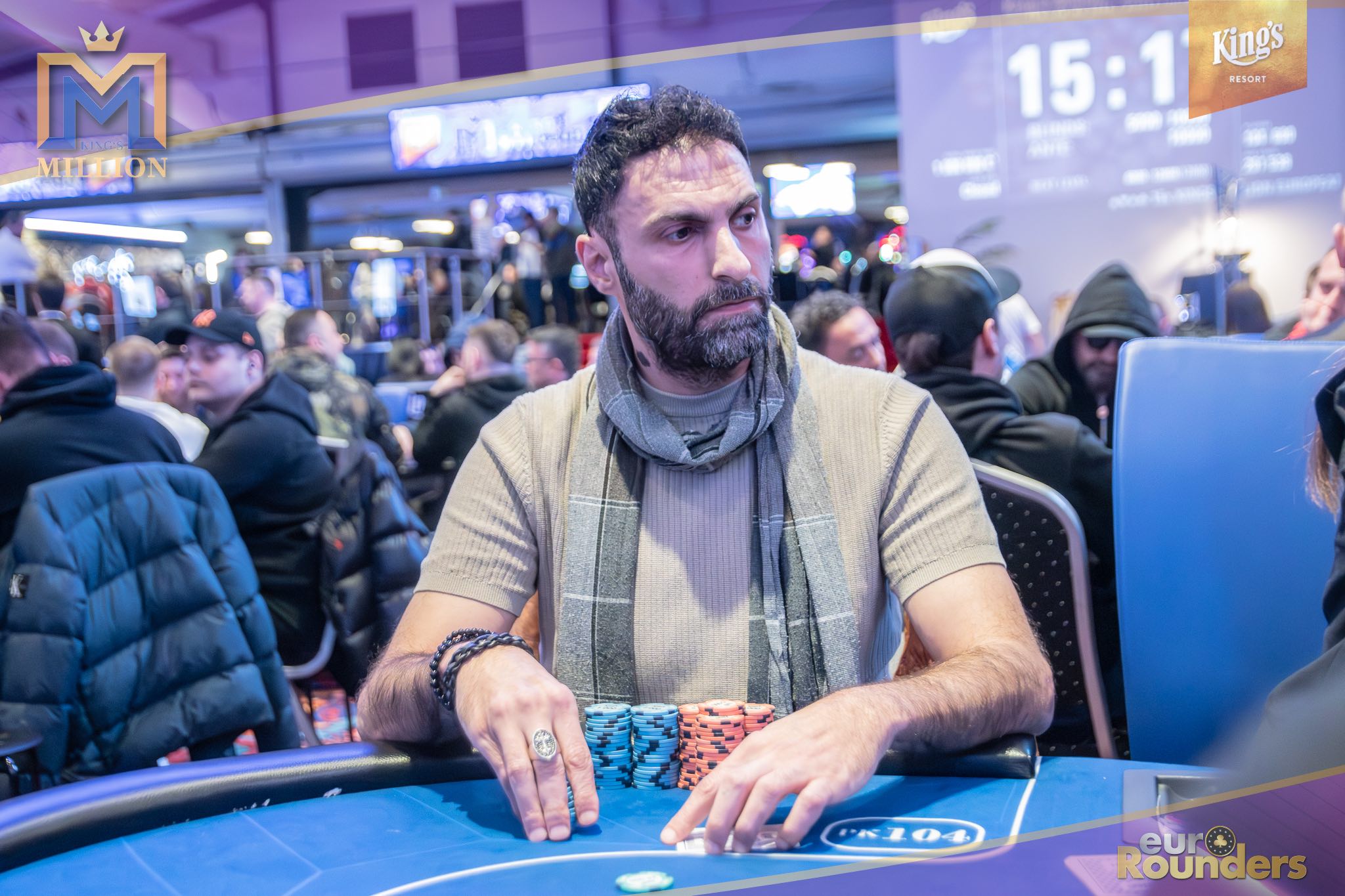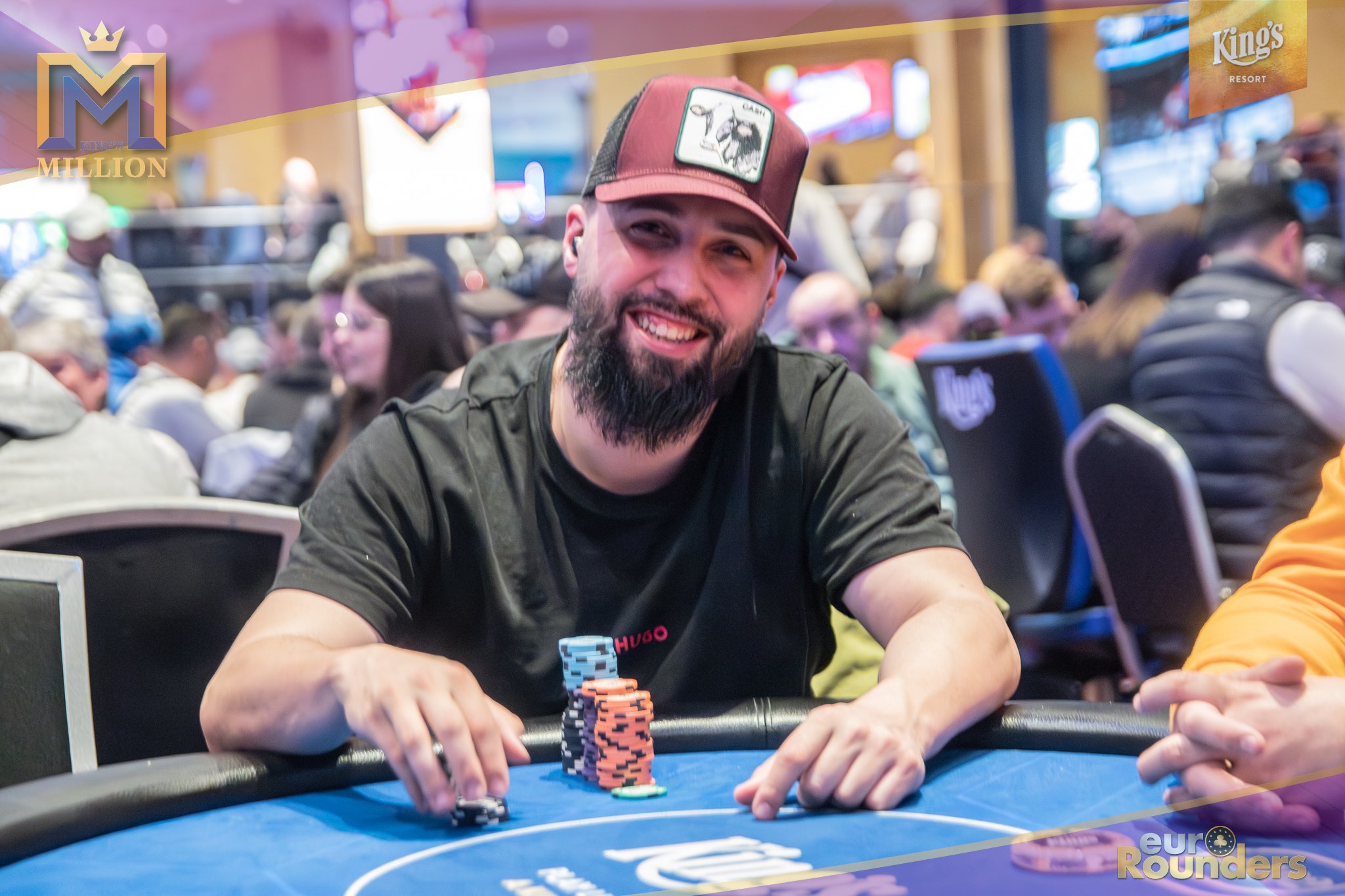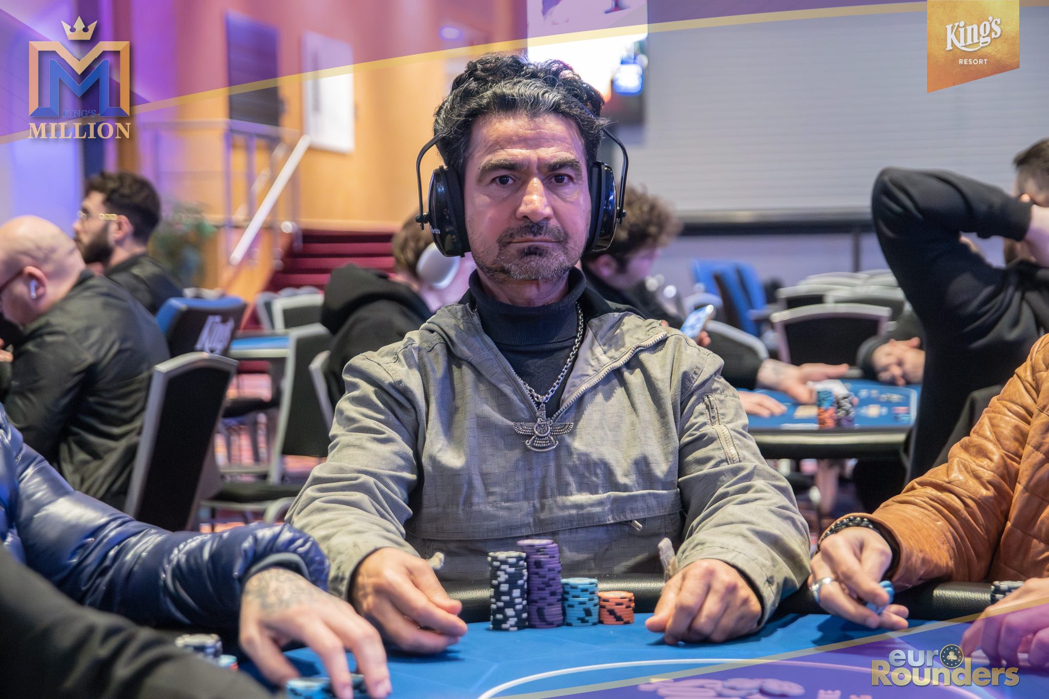 Die legendäre King’s Million mit der namensgebenden €1.000.000 Preispoolgarantie umfasst 11 Starttage (9 Flights 1A bis 1I in Rozvadov + 1 Flight in Prag + 1 Flip and Go) und insgesamt 4 Spieltage. Für das Buy-In von €250 erhält man 40.000 Starting Chips und 40 Minuten Spielzeit pro Blindlevel, 30 in den Speed Flights. An den Tagen 1A und 1B hatte man sogar die Möglichkeit 60-minütige Level zu spielen. Dort wurden die bis zum Level 8 in Part 1 getrennten Starttage dann in Part 2 zusammengelegt. Für die Top 5 von Tag 1AB Part 2 gab es fünf Chipleader-Bonus-Packages à €3.000. Ansonsten sind an jedem anderen regulären Spieltag €1.150 als Chipleader Bonus vorgesehen. 15% jedes Flights schaffen es mit €500 Min-Cash in-the-money. Danach wird ohne weiteres Hand-for-Hand-Play jeweils runter bis auf 10% der Flightteilnehmer*innen gespielt, die ihre Chips dann in Tag 2 mitnehmen. An Tag 2, 3 und am Finaltag sind die Blinds dann 60 Minuten lang. Für die Top-10 im Finale (DI, 14:00 Uhr) wird es dann noch jeweils ein €3.000 Package für die King’s Million European Poker Championship (KM EPC) geben.