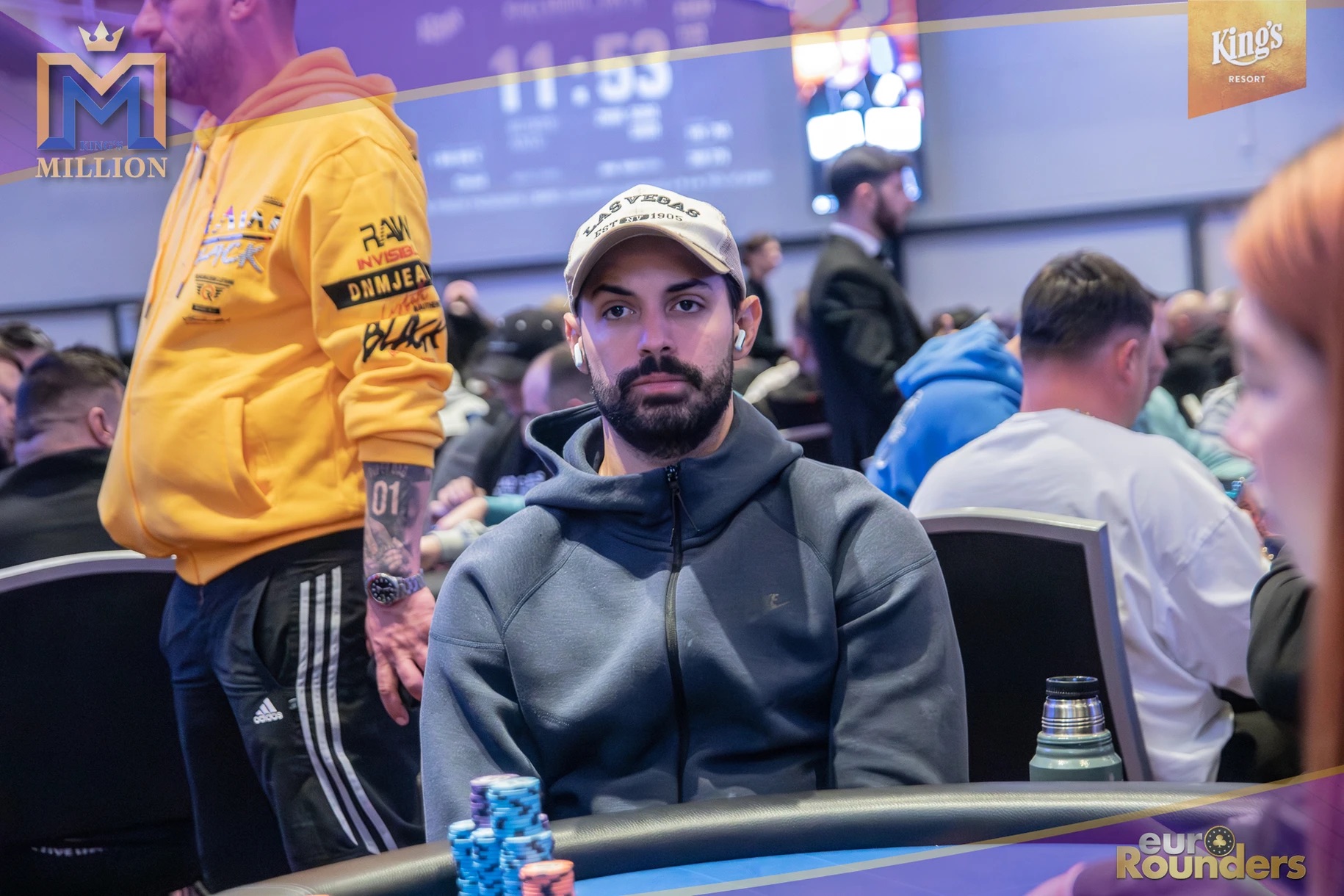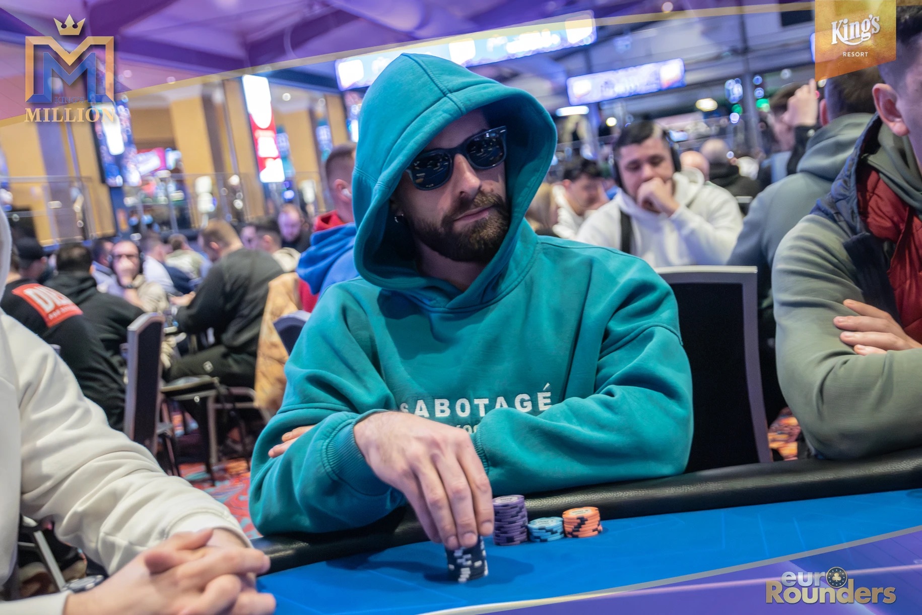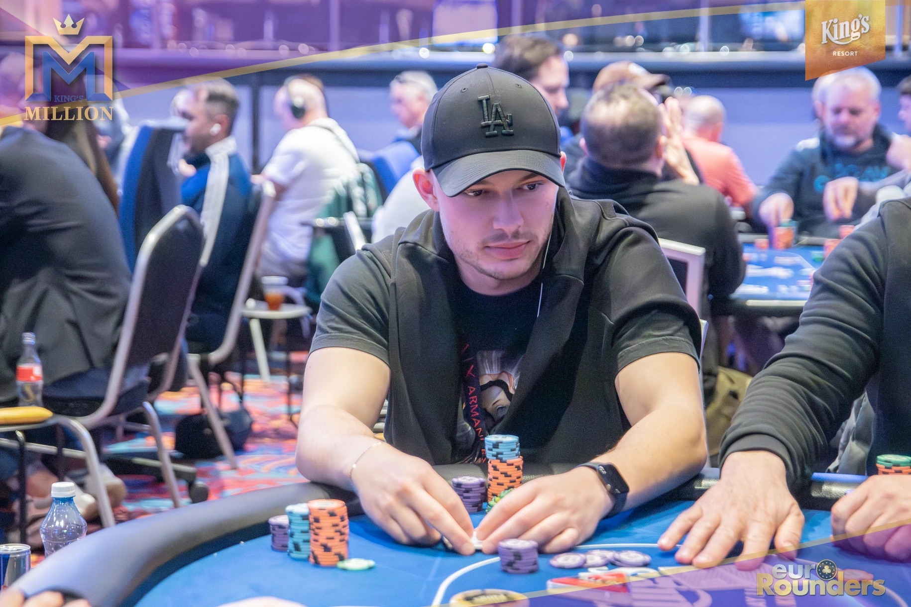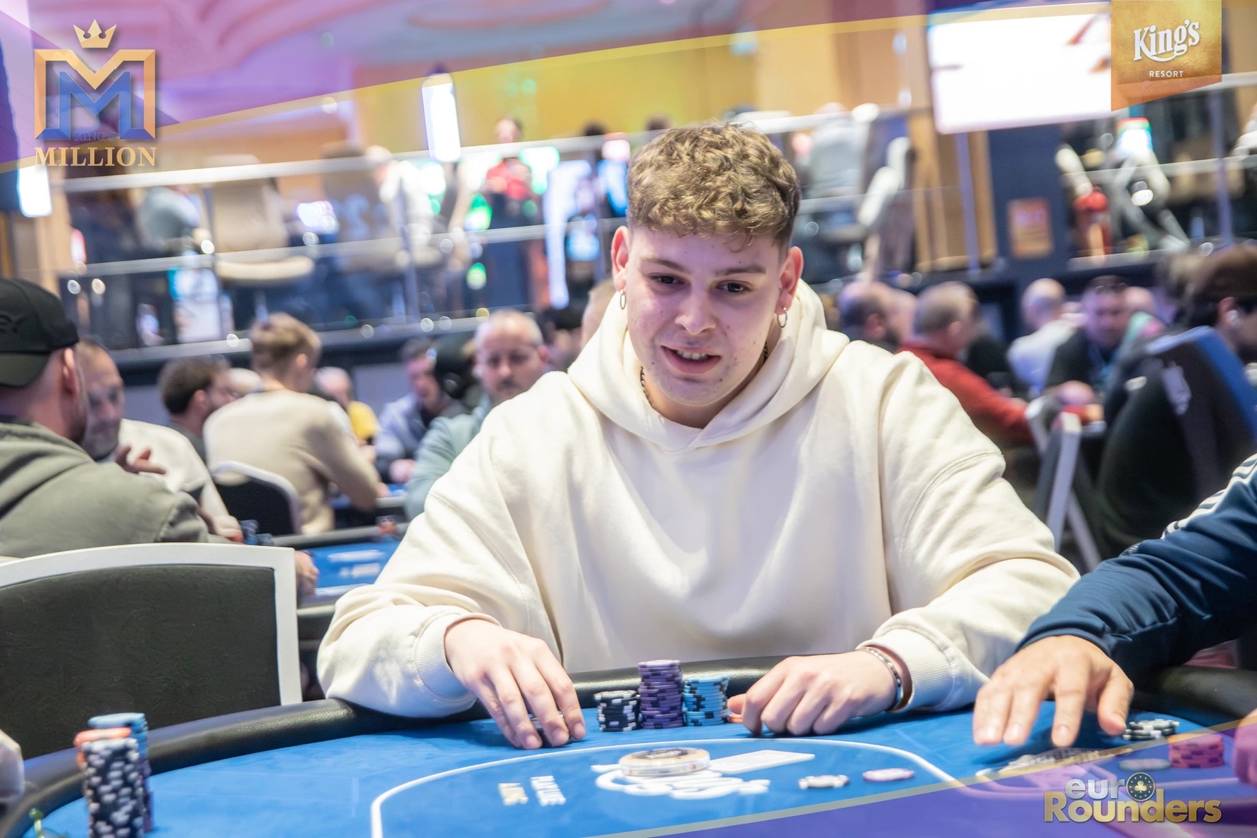 Die legendäre King’s Million mit der namensgebenden €1.000.000 Preispoolgarantie umfasst 11 Starttage (9 Flights 1A bis 1I in Rozvadov + 1 Flight in Prag + 1 Flip and Go) und insgesamt 4 Spieltage. Für das Buy-In von €250 erhält man 40.000 Starting Chips und 40 Minuten Spielzeit pro Blindlevel, 30 in den Speed Flights. An den Tagen 1A und 1B hatte man sogar die Möglichkeit 60-minütige Level zu spielen. Dort wurden die bis zum Level 8 in Part 1 getrennten Starttage dann in Part 2 zusammengelegt. Für die Top 5 von Tag 1AB Part 2 gab es fünf Chipleader-Bonus-Packages à €3.000. Ansonsten sind an jedem anderen regulären Spieltag €1.150 als Chipleader Bonus vorgesehen. 15% jedes Flights schaffen es mit €500 Min-Cash in-the-money. Danach wird ohne weiteres Hand-for-Hand-Play jeweils runter bis auf 10% der Flightteilnehmer*innen gespielt, die ihre Chips dann in Tag 2 mitnehmen. An Tag 2, 3 und am Finaltag sind die Blinds dann 60 Minuten lang. Für die Top-10 im Finale (DI, 14:00 Uhr) wird es dann noch jeweils ein €3.000 Package für die King’s Million European Poker Championship (KM EPC) geben.
