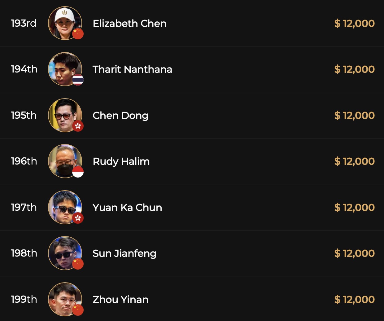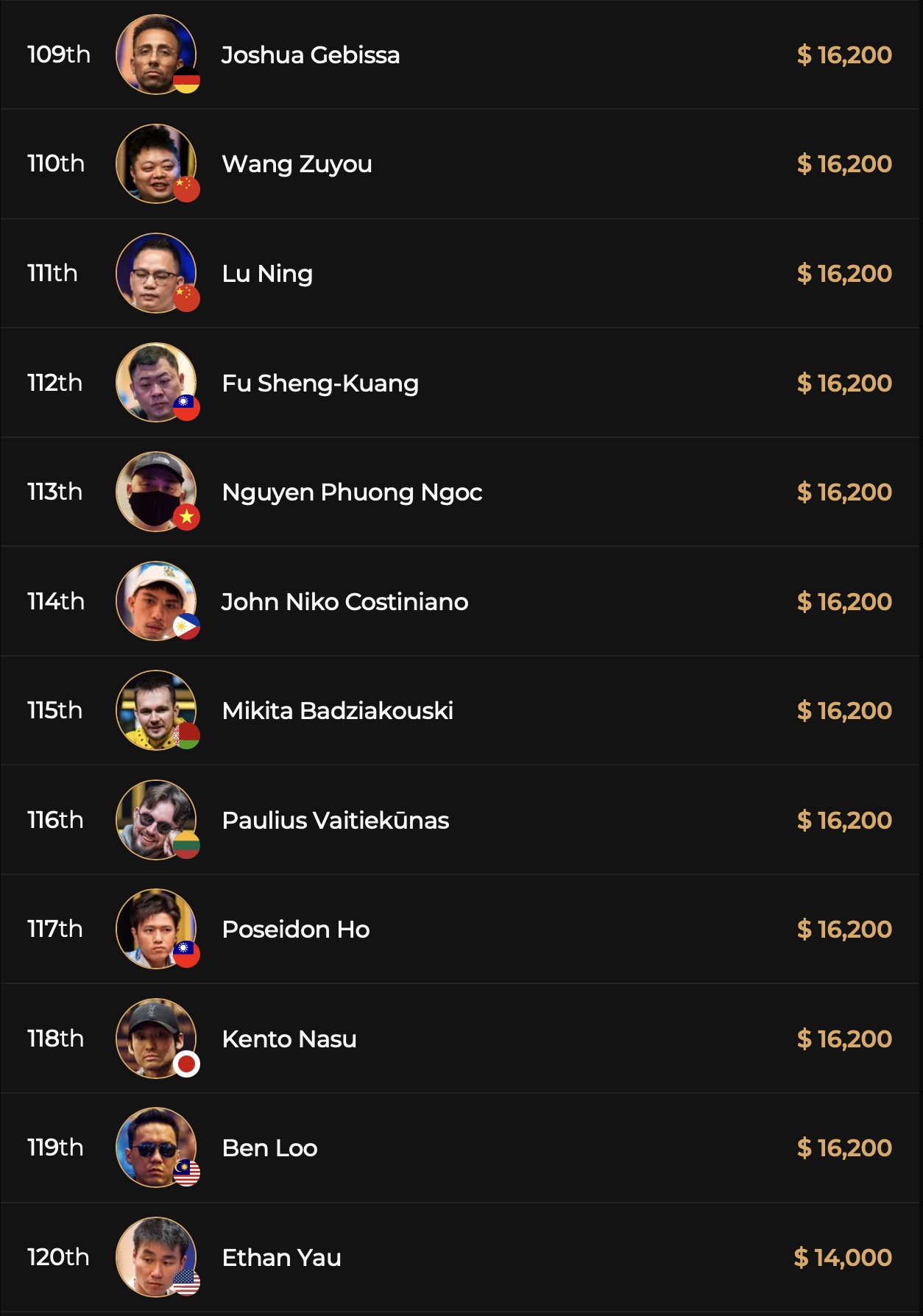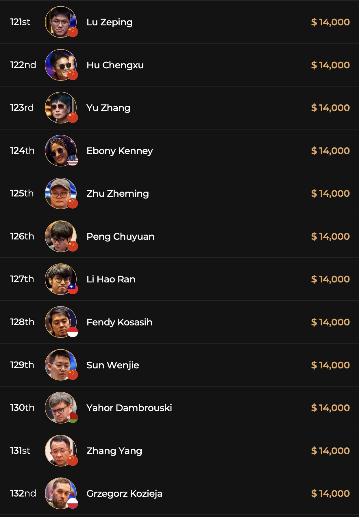 Während aus der D-A-CH_L Fraktion Spieler wie Manuel Fritz, Bernhard Binder, Erik Eisen, Hannes Jeschka, Samuel Mullur, Roland Rokita nach ihren Bustouts an Tag 1A es noch einmal in einem anderen Flight versuchen müssen, sprang ein deutschsprachiges Quartett direkt in Tag 2. Der tapfer als shortstack kämpfende Marin Sedlak (GER) wird mit 9 BBs in die Fortsetzung vom Highroller Event starten, Klemens Roiter (AUT) überzeugte einmal mehr mit eingetüteten 25 BBs, Leon Sturm (GER) liegt mit 41 BBs knapp unter dem Average von 43 BBs und Christoph Nguyen (GER) konnte mit beeindruckenden 121 BBs den Tag 1A als 2nd Chipleader beenden. Damit ließ er Spieler wie Bryn Kenney (USA, 116 BBs), Alex Kulev (BUL, 96 BBs), Stephen Chidwick (GBR, 52 BBs), Isaac Haxton (USA, 48 BBs), Emilien Pitavy (FRA, 33 BBs), Johannes Straver (NED, 32 BBs) oder Ren Li (CHN, 16 BBs) hinter sich. Vor ihm im Chipcount lag nur noch Xu Liang aus China, der 143 BBs an Tag 2 aus seiner Chiptüte holen wird.