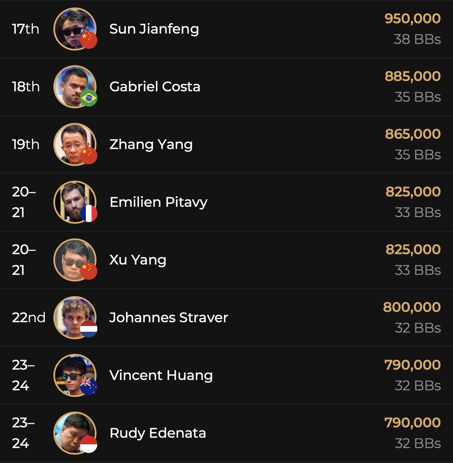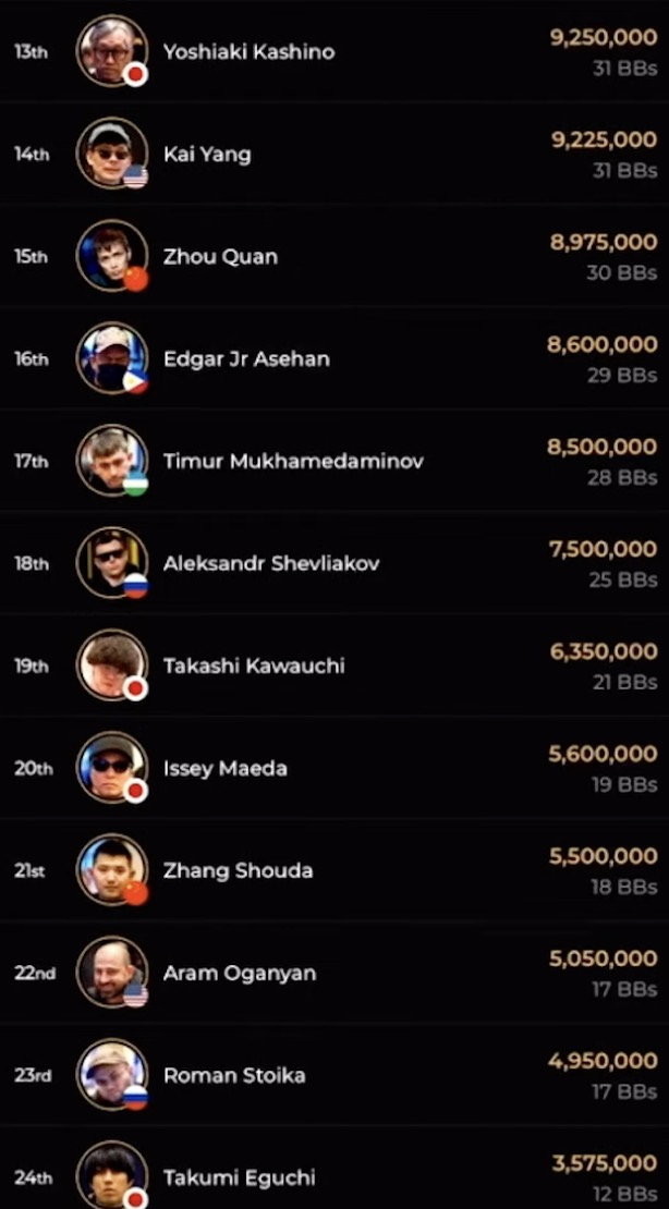 Die Chipcounts am Ende von Day 3: