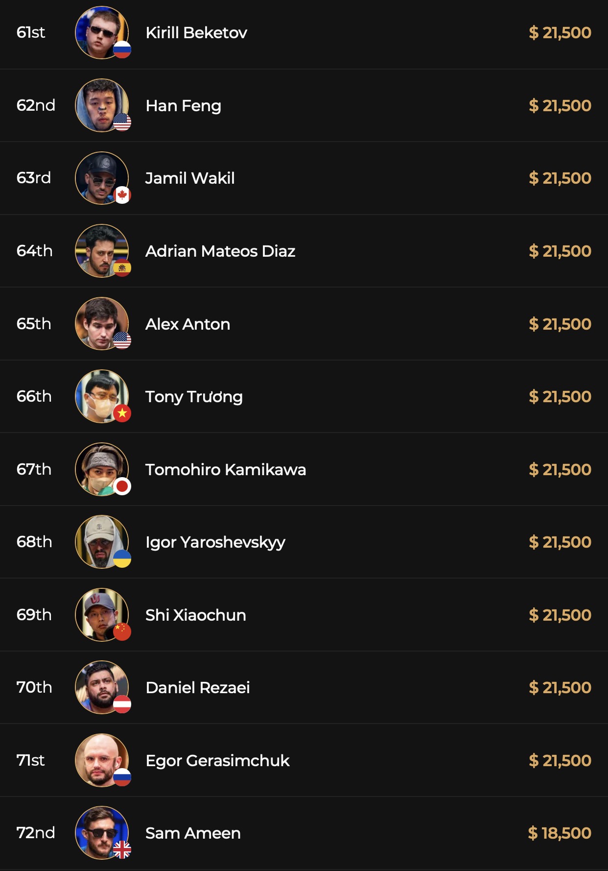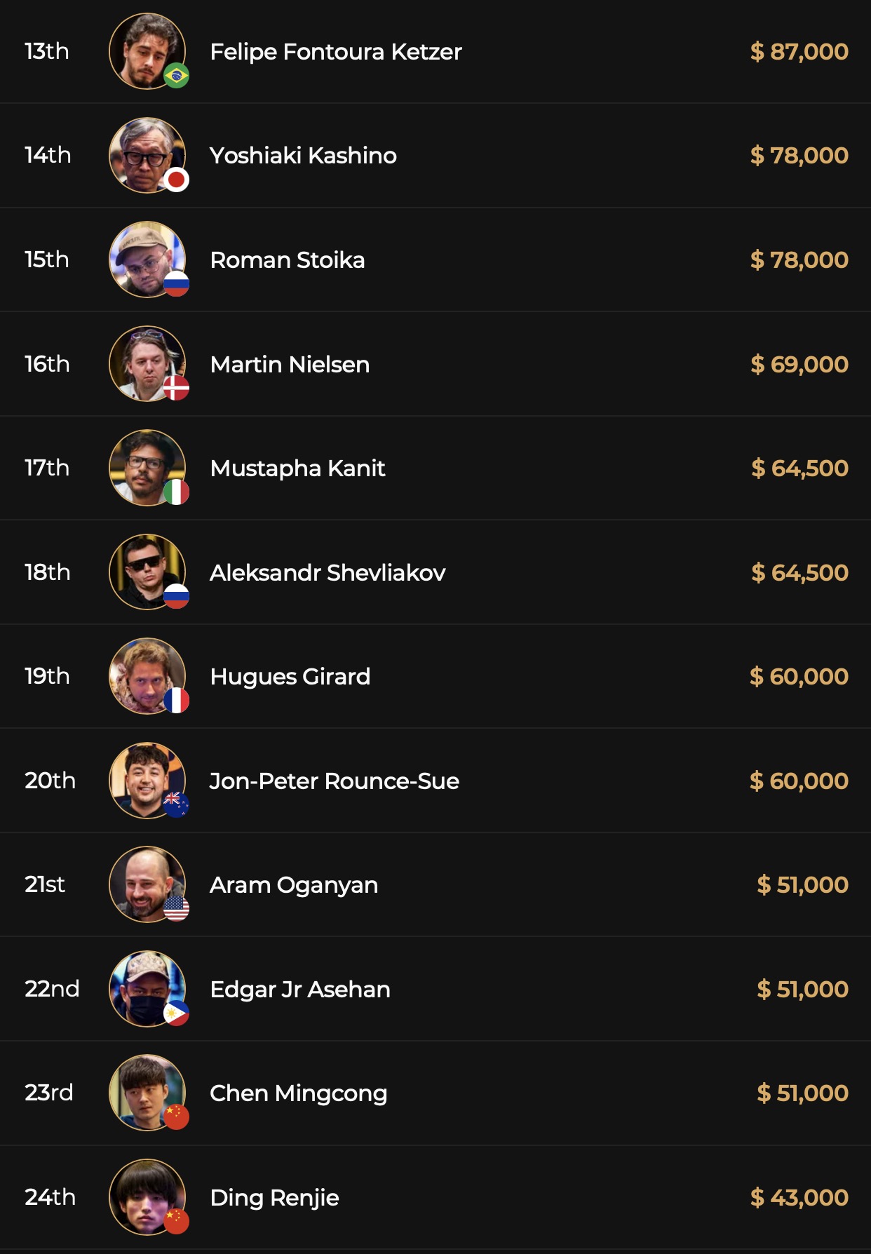 Unter den besten 24, die es in Tag 3 des 4-Day-Events geschafft hatten, waren viele bekannte Spieler. Zum einen versuchten Fing Renjie als NLH Bounty Quattro Champion von Event #2 und Jen-Peter Rounce-Sue als PLO Champion von Event#12 direkt einen zweiten Titel bei der aktuellen Triton ONE Series einzusammeln. Historisches hatte auch der Triton Super High Roller Series Zhou Quan vor, der es mit einem Crossover-Erfolg von Triton SHRS und Trioton ONE Artur Martirosian gleichtun wollte. Die europäischen Titelhoffnungen lagen u.a. auf dem im Player ONE Leaderboard gut platzierten Spanier Ander Vallinas, während die Fan Favorites sicherlich die bekannten Super High Roller Felipe Ketzer, Mustapha Kanit und das Short-Deck-Mastermind Martin Nielsen waren.